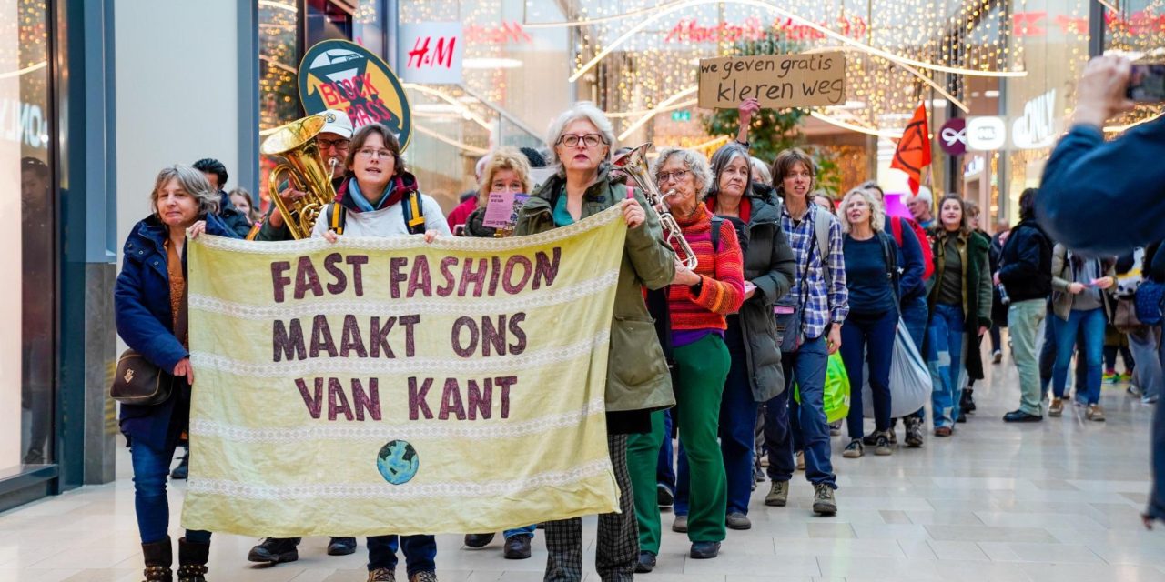 Tussen het winkelend publiek liepen demonstranten van Extinction Rebellion. Zij droegen borden met teksten als ‘Black Friday Kills’ en spraken voorbijgangers aan. De demonstranten verplaatsten zich door verschillende winkelstraten in de binnenstad.