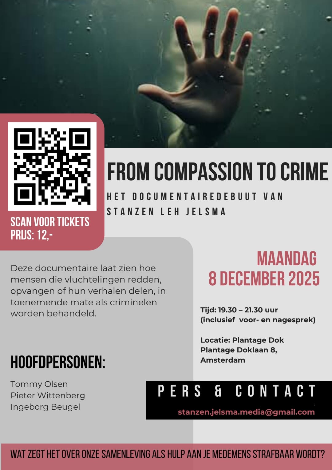 De screening van Stanzen Jelsma’s documentaire ’From Compassion to Crime’ wordt op maandag 8 december 2025 vertoond in Plantage Dok in Amsterdam. Klik hier voor meer informatie of zie onderstaande afbeelding. Daarnaast is ze bezig met een samenwerking met Pakhuis te Zwijger voor een vertoning als onderdeel van het programma “World Without Borders”. De vertoning staat gepland voor februari 2026.