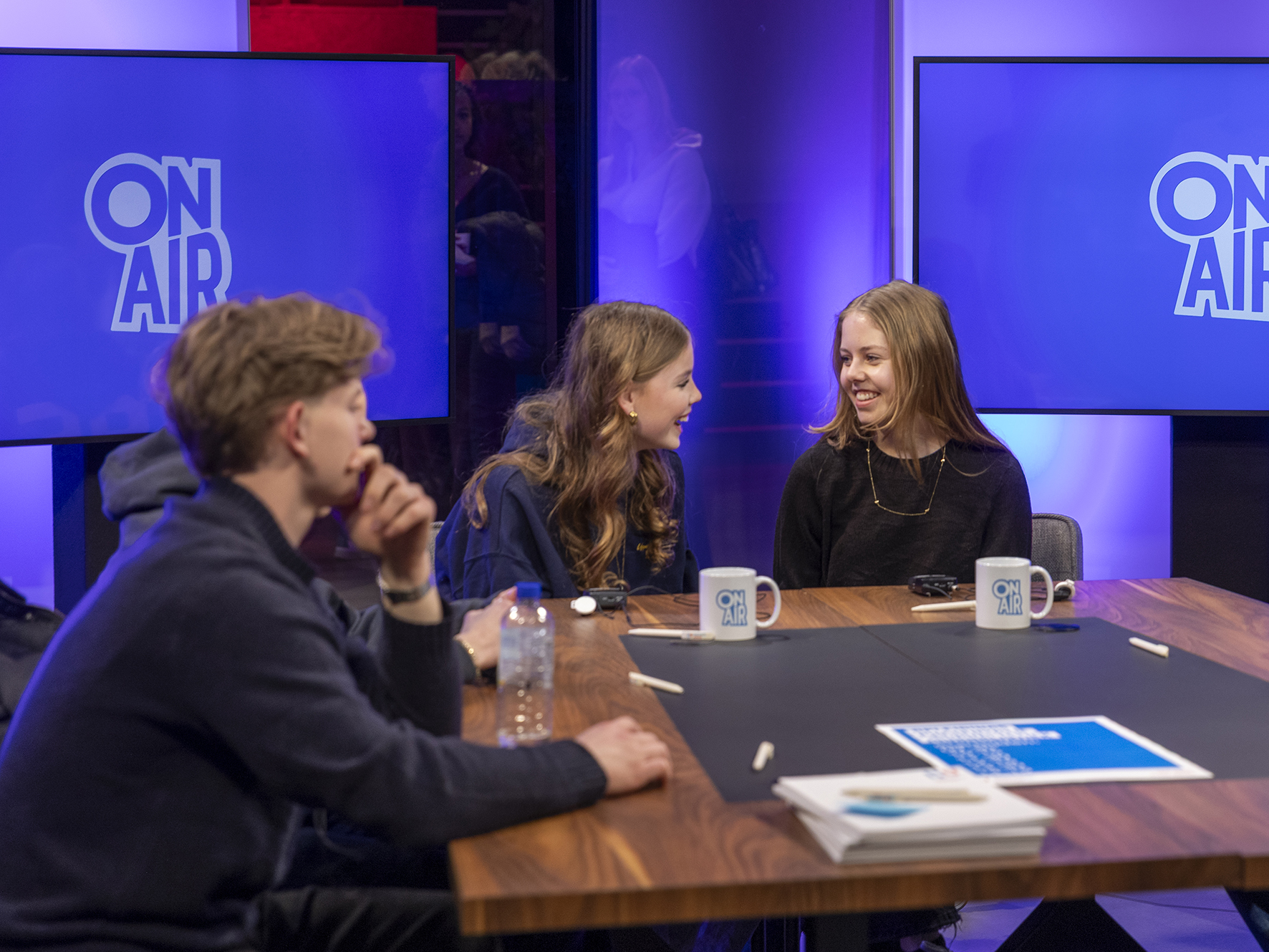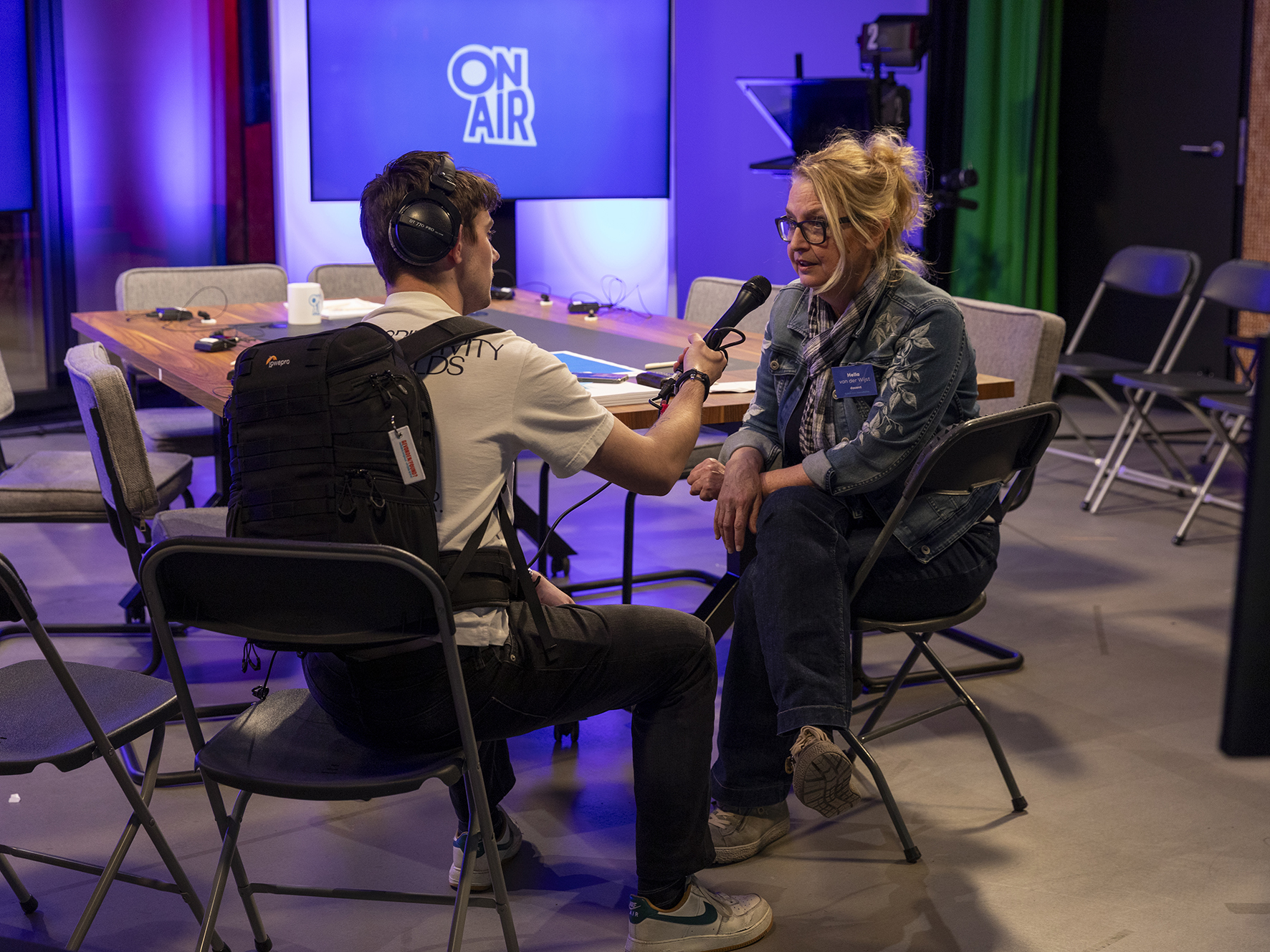 De sfeer was geweldig volgens de aanwezige docenten, managers en studentassistenten. Veel en goede vragen zijn gesteld over het vak journalistiek dat onder druk staat onder andere door fakenieuws en bedreiging van journalisten. Over werkgelegenheid en natuurlijk de werkwijze en sfeer op school. Of de sfeer goed was  op de open dag? Zie je op de foto’s. Zie Nina als de nieuwe Eva Jinek of Matthijs als de nieuwe Humberto Tan of Siffra en Mathijs met koptelefoon op op weg naar het eerste radiointerview.