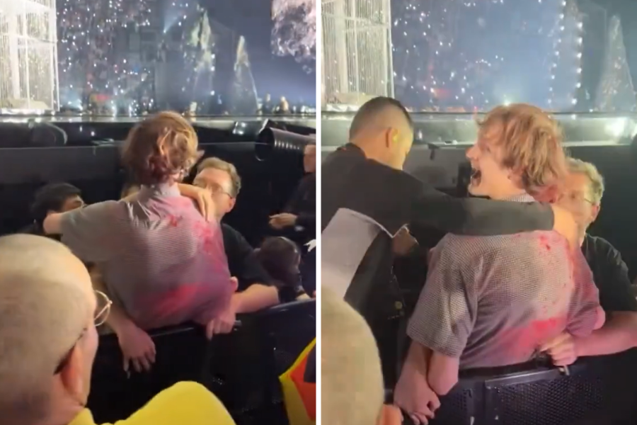 Tijdens Raphaels live-optreden snelt plots een tweetal demonstranten zich richting het podium. Beveiligers grijpen snel in en werken hen tegen de grond, voordat ze de artiest bereiken. Eén van hen gooit verf; een crewlid wordt geraakt maar raakt niet gewond. In de zaal gaan opnieuw gefluit en boegeroep door de lucht en het voorval wordt gefilmd door iemand uit het publiek. De demonstranten worden door de beveiliging het gebouw uit geëscorteerd.