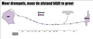 Adviesbureau CROW raadt aan bij snelheden van 50 km/h elke 80 tot 100 meter een snelheidsdrempel aan te leggen.