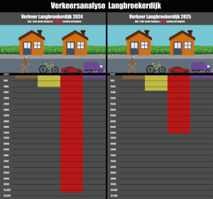 Ook na de aanleg van nieuwe drempels en versmallingen blijven de snelheden die gemeten worden op de Langbroekerdijk nog steeds erg hoog. Zo is te zien uit de data die is verzameld door burgerinitiatief Telraam. Ook bewoners uiten hun frustraties, “Niet voldoende”.