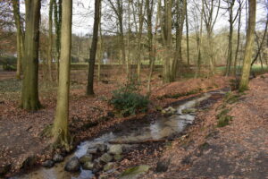 De beek van landgoed Mariëndaal waar een tiental vaten zijn gedumpt.