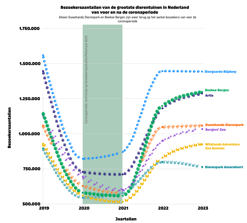 Om de datavisualisaties in dit artikel te maken is er gebruik gebruik gemaakt van jaarverslagen en jaaroverzichten, gevonden op de websites van de desbetreffende dierentuinen. Als deze niet te vinden waren, of de dierentuin deze niet aan mij wilde verschaffen, is de informatie afkomstig van Looopings.nl. Zij zijn een onafhankelijke website die het nieuws uit de wereld van Europese pretparken, achtbanen, dierentuinen, kermissen en andere dagattracties brengen. Zij werken onafhankelijk van de dierentuinen en omdat het hier gaat om feitelijke informatie, die gecontroleerd zijn, wordt deze site als betrouwbaar geacht.
