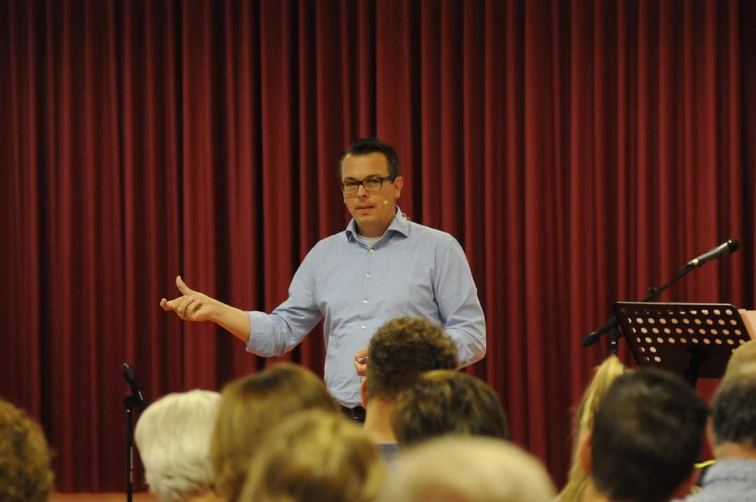 “Eén van de meisjes uit die christelijke studentenvereniging heeft mij toen enorm geholpen om alles te ontdekken. Zij voelde dat ze mij een beetje bij de hand moest nemen in dit hele geloofsgebeuren. Ze nam me mee naar allerlei verschillende kerken tot ik me er bij eentje thuis voelde. Dat was uiteindelijk, grappig genoeg, bij de kerk waar zij ook bij zat. Een vol-evangelische kerk. Datzelfde meisje is uiteindelijk mijn vrouw geworden. Bij diezelfde kerk ging wat later een groep weg om een eigen gemeente te beginnen en ik voelde mij heel sterk verbonden met de voorganger van die nieuwe gemeente. Wij zijn kort daarna naar die nieuwe gemeente ‘verhuisd’. Ik ben die man heel dankbaar voor alle mogelijkheden die hij mij heeft gegeven. Ik mocht al heel snel bij hem in de gemeente spreken en dat heeft het vuurtje om te gaan evangeliseren wel flink aangewakkerd.”