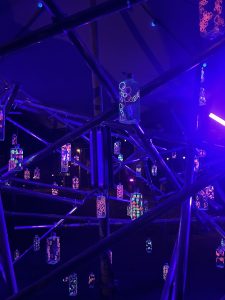 ‘We zitten bij Fort de Batterijen op een prachtige locatie. Bij de vorige editie van VONK zijn we hier een beetje gestrand’, lacht Bea. De eerste editie was bij Fort Bij het Hemeltje. Dat ligt dichter bij Utrecht. Bea legt uit dat bij Fort Bij het Hemeltje anders nooit evenementen georganiseerd worden. Er is in alle rust op het terrein een dassenfamilie gaan zitten – dassen zijn enorm beschermd in Nederland. ‘Ons lichtkunstfestival moest dus wijken’ … daardoor is de organisatie heel last minute terechtgekomen op Fort de Batterijen. Fort de Batterijen is van zichzelf ook al een evenementenlocatie. ‘Meestal zijn er bedrijfsuitjes en dergelijke, maar gelukkig had Fort de Batterijen tijdens de herfstvakantie een gaatje in de agenda.’ Bea is vooral enthousiast over het feit dat er – aangezien het al een evenementenlocatie was – aangelegde voetpaden zijn, er is genoeg stroom, er zijn al toiletten… ‘Het is ook gewoon een prachtige locatie’, voegt ze toe.