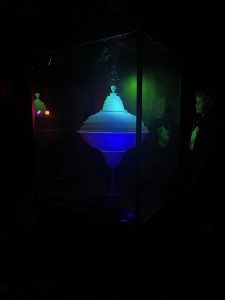 Kunstwerk op VONK: MELTING door Gertjan Adema: een reusachtige bromtol die draait onder knipperend licht.
