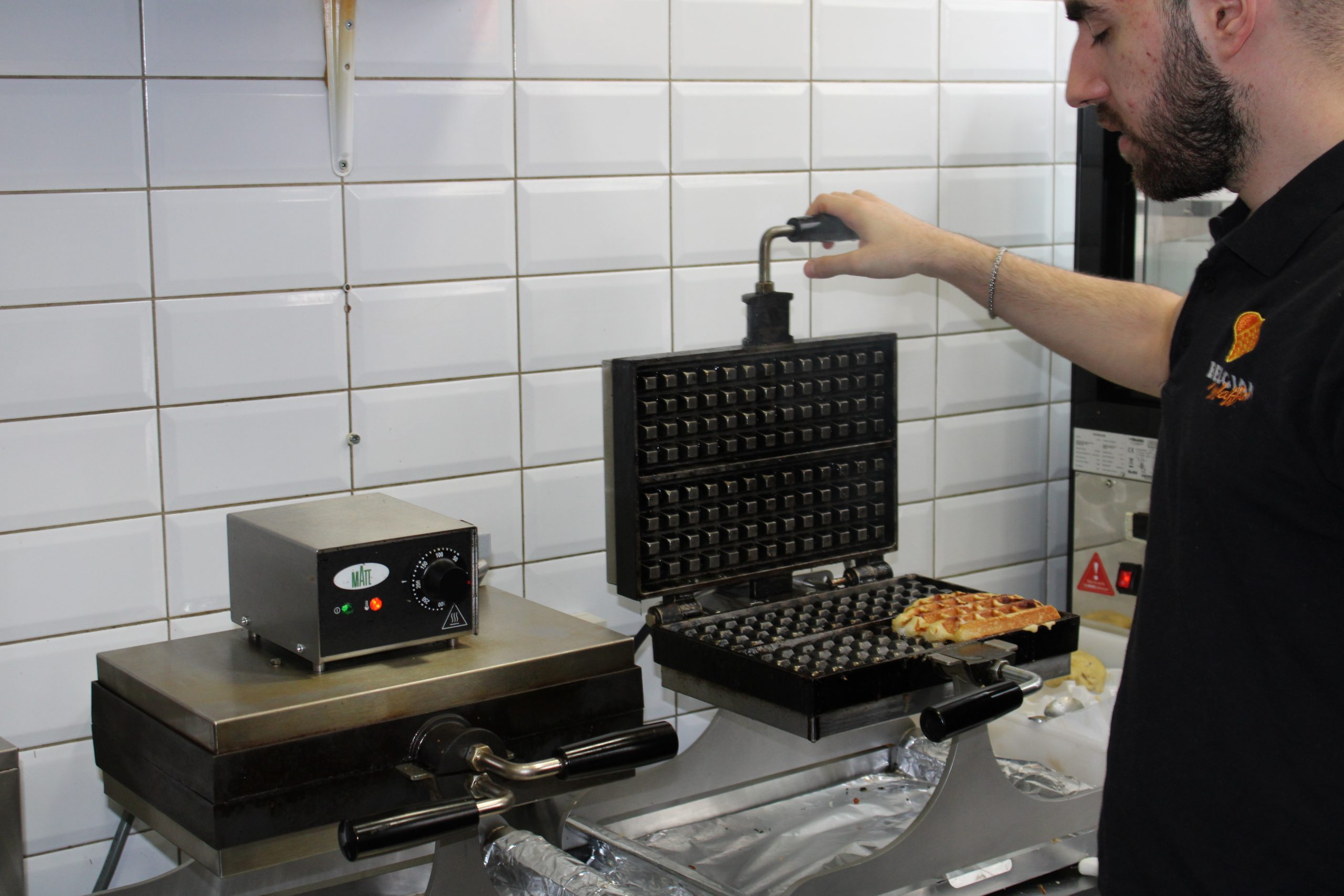 “I wouldn’t say that we are moving very far away from tradition. The tradition is there. We’re still making them in those really old hot irons with the same ingredients. We use Belgian brown sugar, which is cassonade, and it’s made out of beetroot. That’s just one of the originalities and the tradition of the Brussels waffle. We do adapt because we make the workshop in English, but other than that, the rest is full Belgian tradition.”