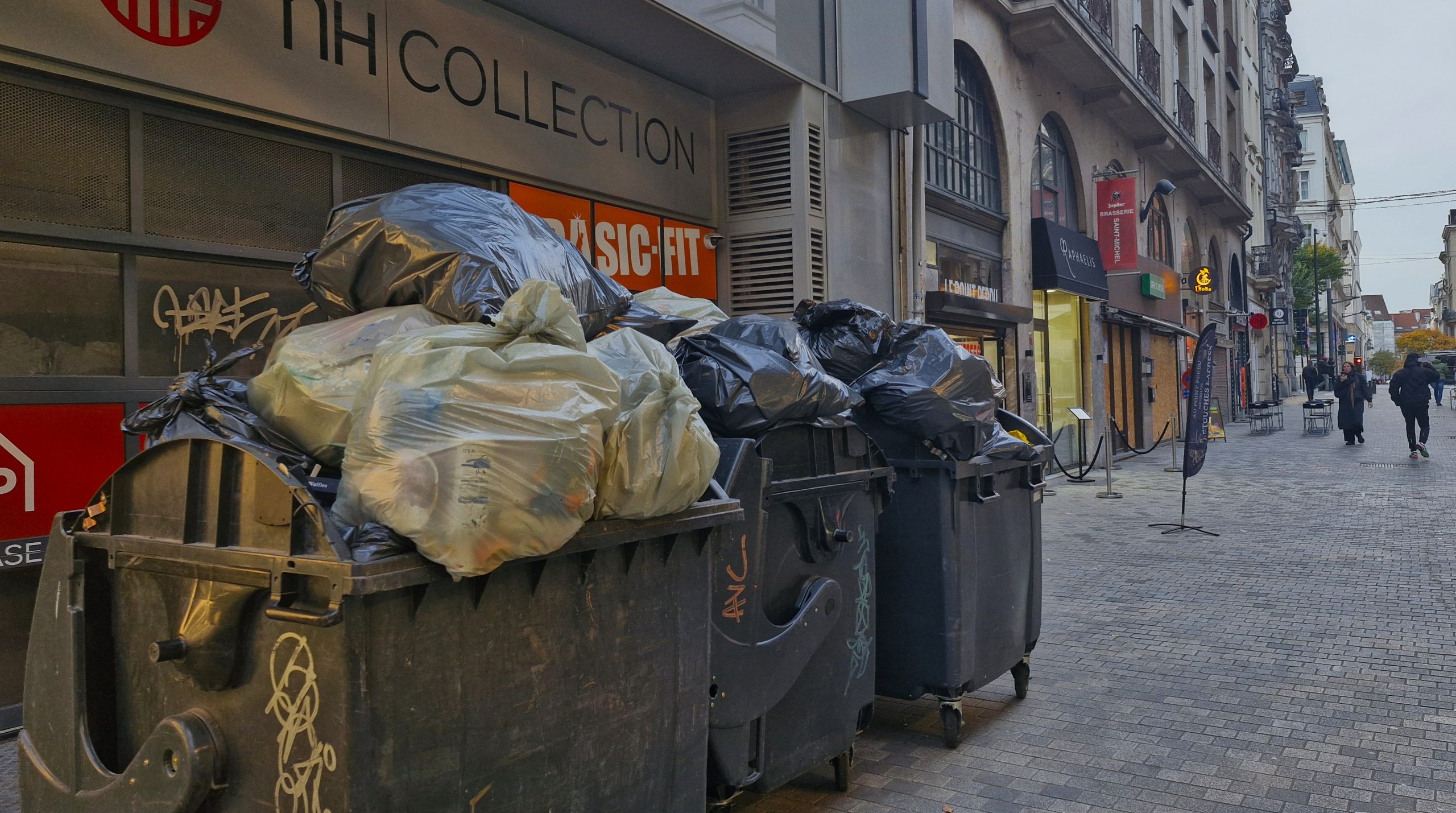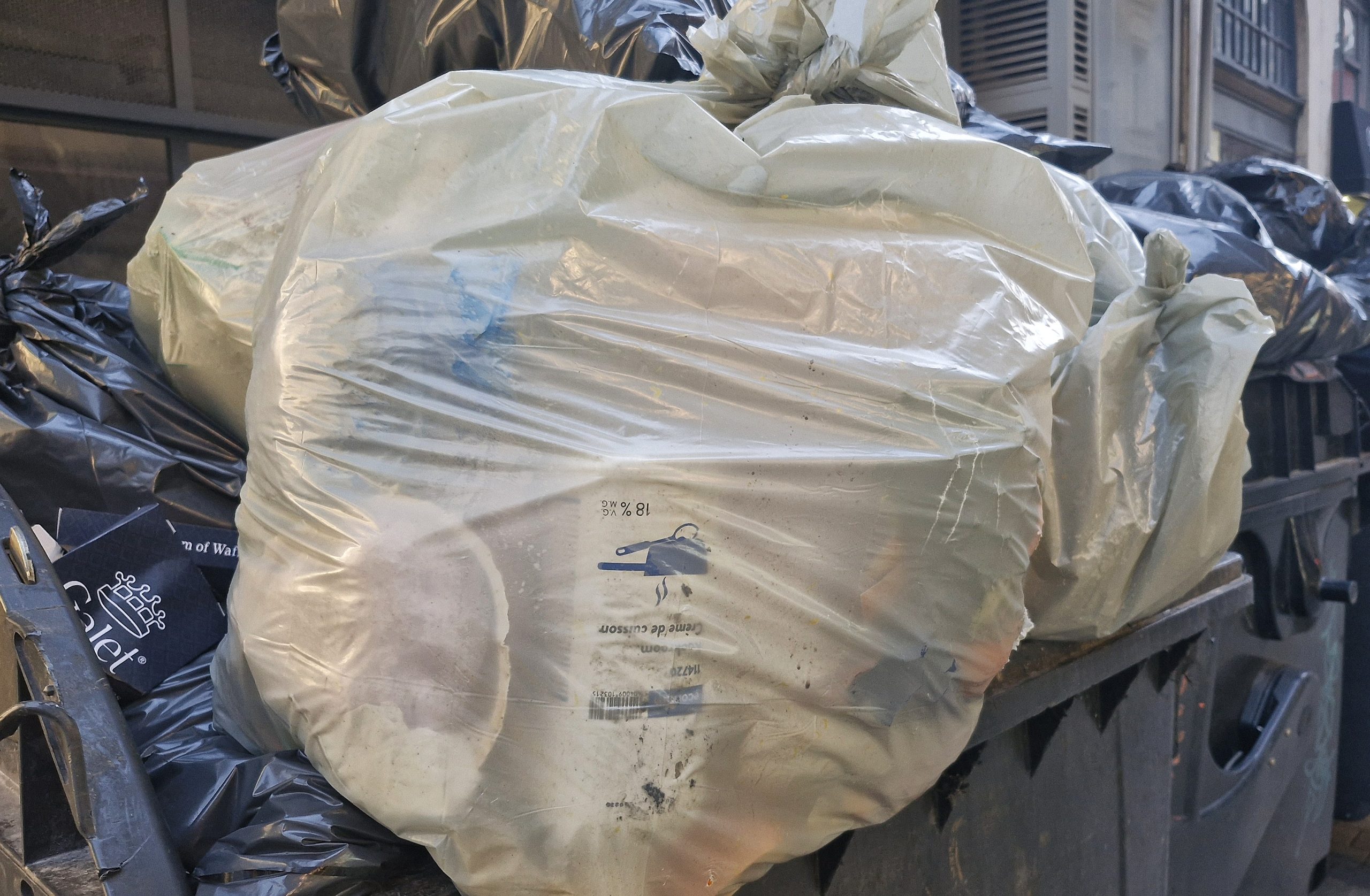 At almost every corner, there are trash bins full of trash or just trash bags on the ground