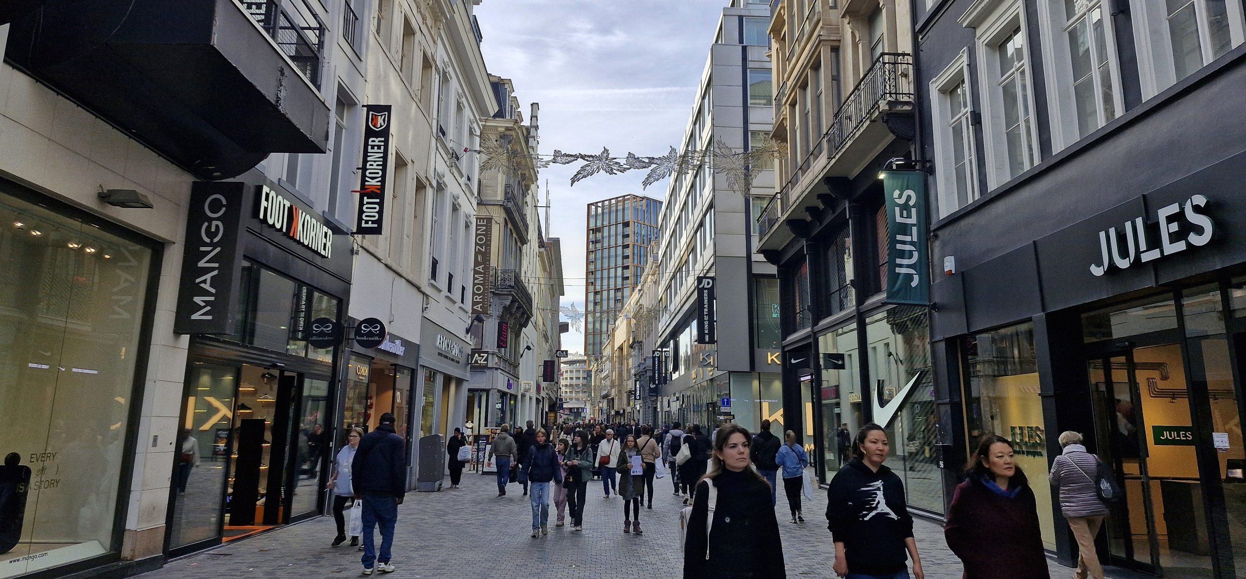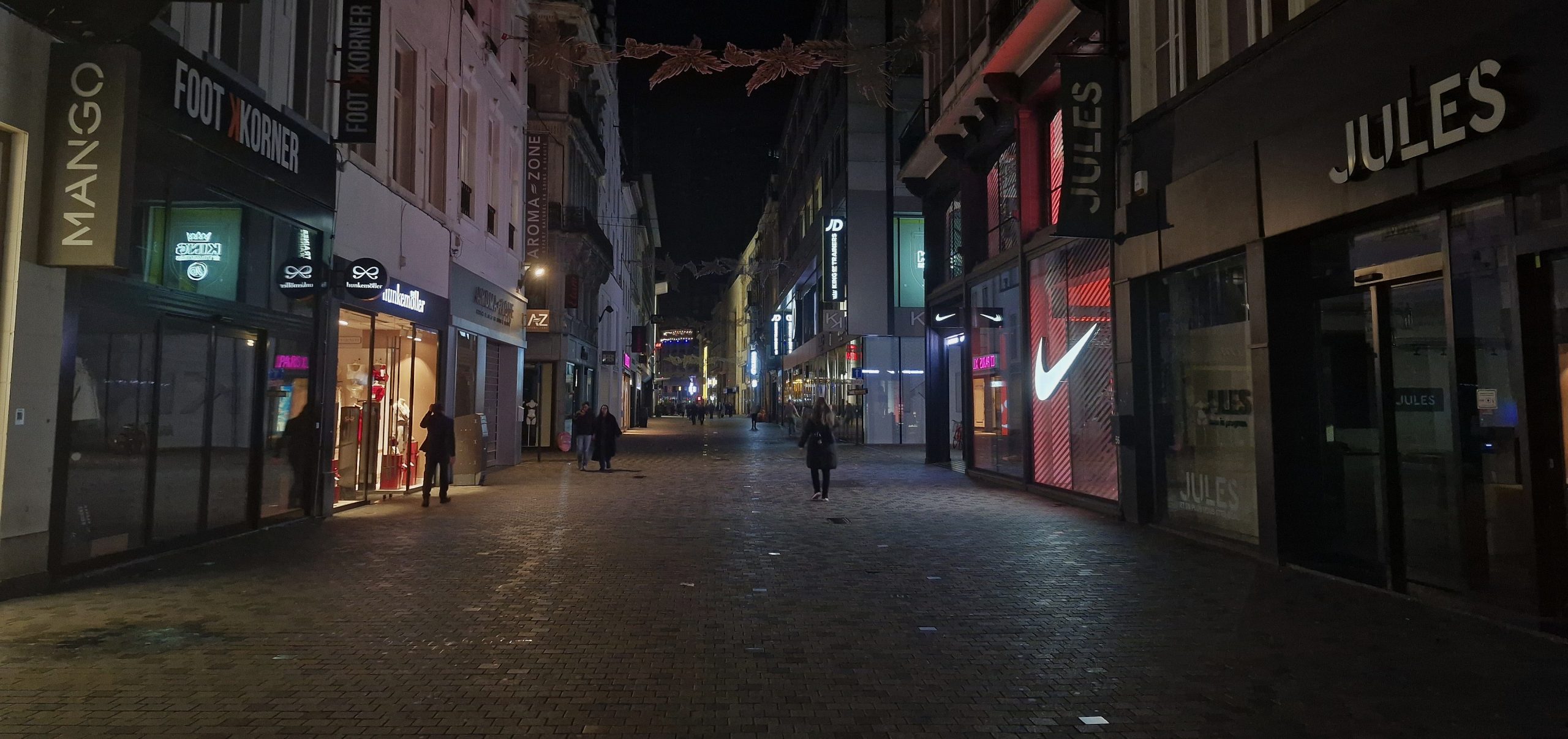 Same spot on Rue Neuve street during the night. Buzzing city life stops existing