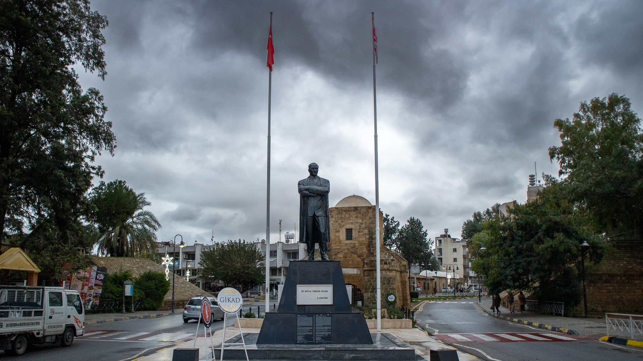 The checkpoints look intimidating from the outside, flags of either Greece and Cyprus or Türkiye and North Cyprus. Crossing is far easier than it seems, however. Before the booth, there could be a small queue of tourists, Cypriots meeting their family or going shopping, or no one waiting. At the booth, one gives their passport or ID-card, it gets checked by an attendant who is often on their phone or talking with a colleague, they press a few keys on their keyboard, return the document and you can continue to the checkpoint on the other side of the buffer zone. This interaction takes 30 seconds at most, often without eye-contact or any conversation. For something that dominate the islands modern history and politics, the people working on it seem to care little.