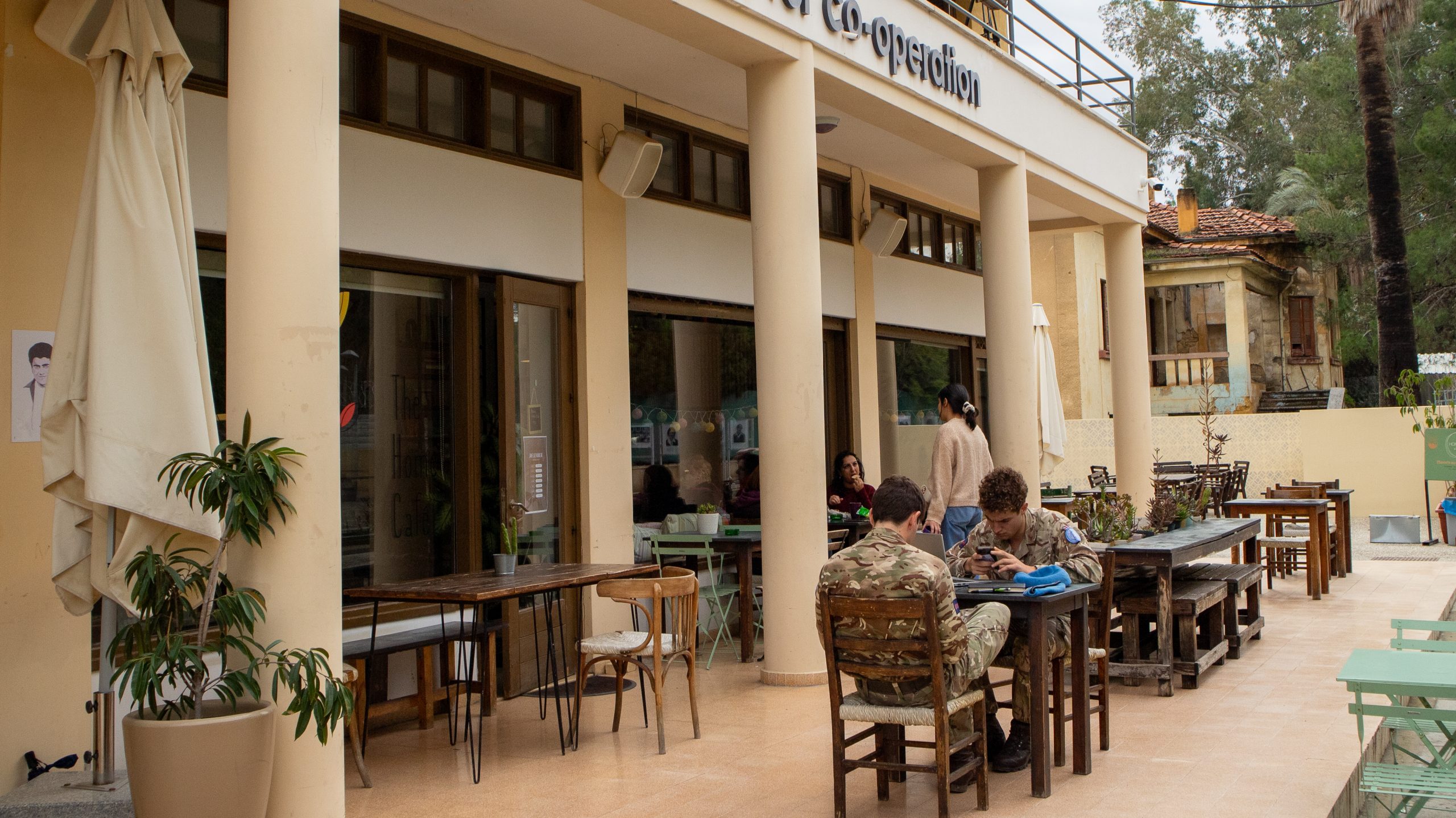 The Home is a community centre housing multiple organisations, like AHDR itself, the podcast platform Island Talks, and United Sports Cyprus. The centre also hosts a café, the Home Café, where unity-minded Cypriots from both sides, as well as UN-soldiers, come together to meet and drink coffee. To get to the building, one needs to cross one of the checkpoints on either side of the buffer zone.