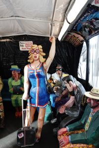 Red Grooms’ life-sized The Bus installation turns a crowded city bus into a playful yet pointed metaphor for shared movement and migration. Photograph by Kim Elst, 2026.