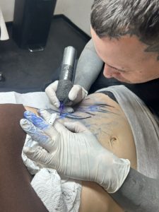 Furthermore the reasons behind tattoos have shifted. Martin explains that it used to be more about standing out or being rebellious. That element still exists, but it is no longer the main focus. Many people today care more about the aesthetic side. They want something that looks good, something that fits their personal style. Social media plays a major role in this development. Trends move quickly, and people often come in with very specific ideas they have seen online. Martin compares it to fashion. “There are always a few things that suddenly everyone wants,” he says. At the moment, for example, lettering along the spine is extremely popular.