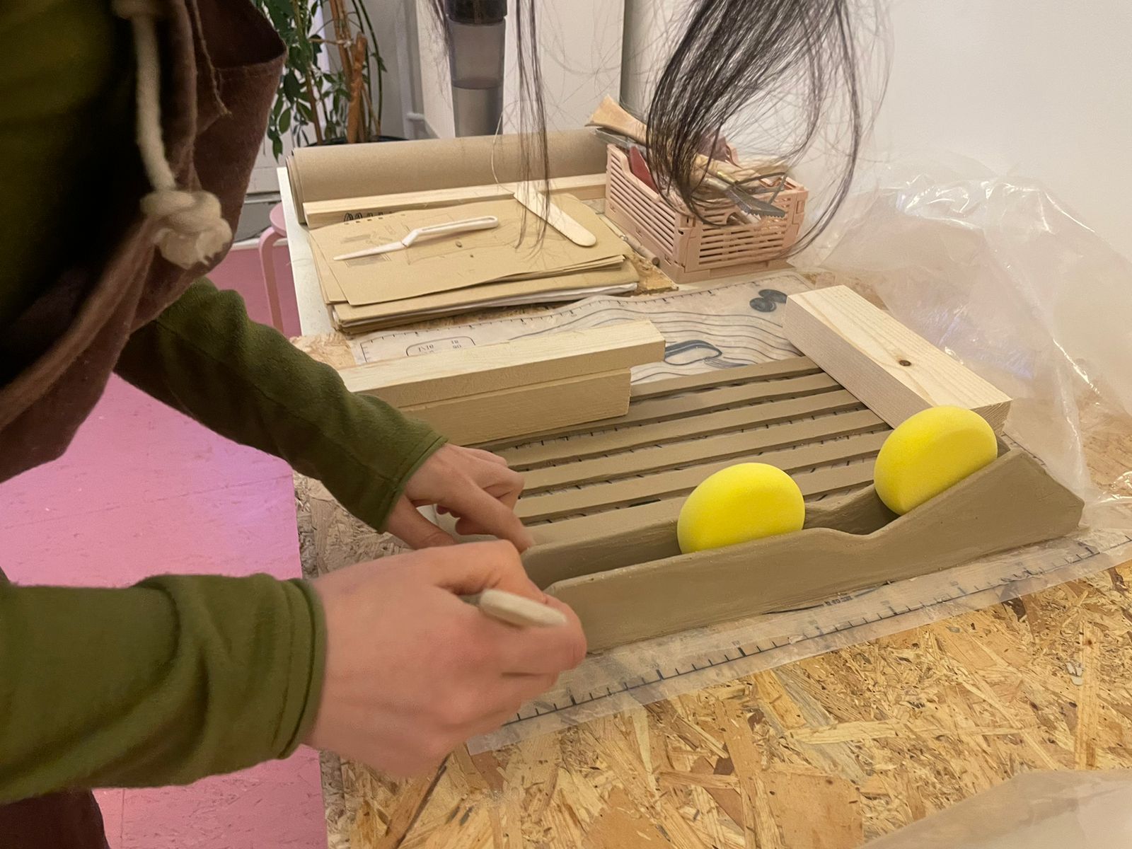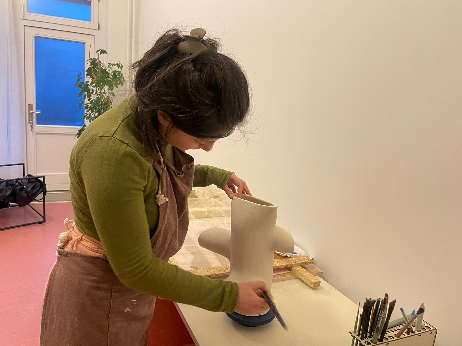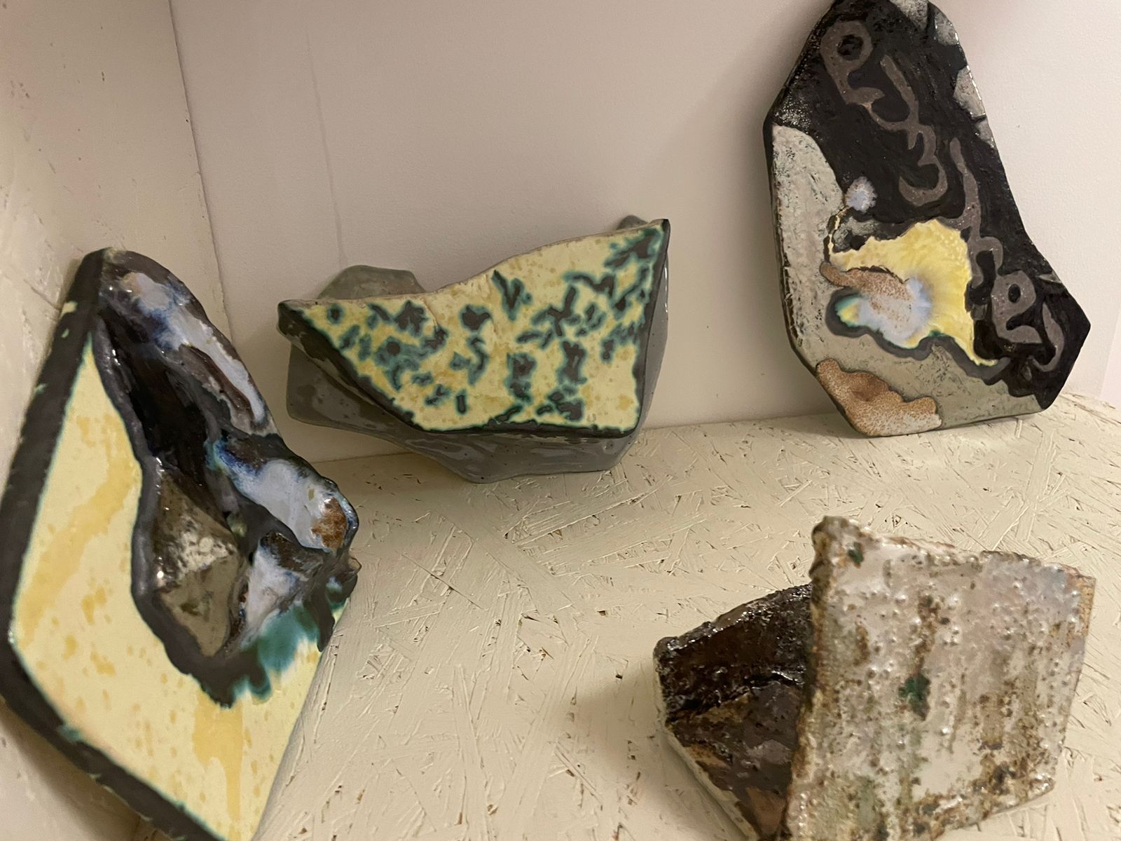 She is currently preparing for new exhibitions. In May, she will present a 12-part artwork made with different shades of green and light blue, created using various materials and firing techniques.