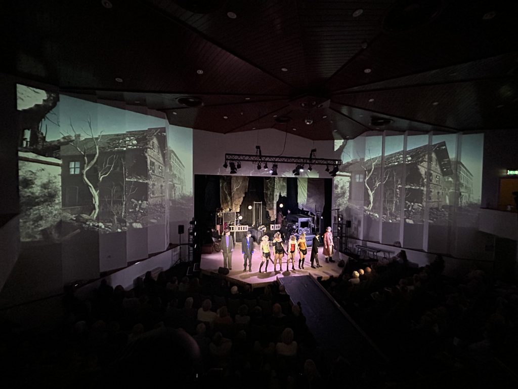 Welgeteld zes spelers staan continu op, naast of boven het podium. Continu zijn de spelers te zien. Maar door de snelle afwisseling en het dynamische spel oogt het stuk ook net wat verwarrend. Er lijkt een ware romance te ontstaan tussen twee spelers, Jimmy en Jenny. Hierbij lijken de andere spelers zich meer op de achtergrond te bevinden. Je leeft als kijker mee met de tortelduifjes, tot er als het einde naderd, te zien is dat de blijdschap maar van korte duur is. De stad komt ten val en voor je het weet komen er emoties om de hoek kijken waarvan je niet wist dat deze omhoog zouden komen bij het kijken van een theatervoorstelling op een reguliere zondagmiddag. De liefde spat van het toneel af, maar ook de emoties die afscheid nemen met zich meebrengen, zijn sterk te voelen.
