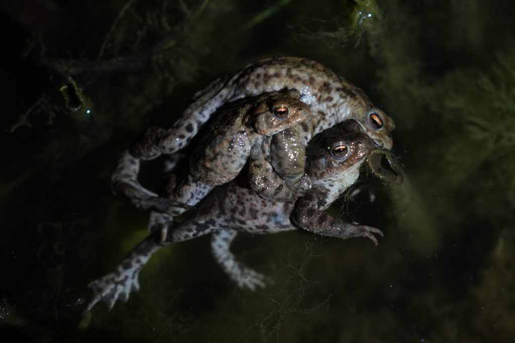 Mannetjes duiken meteen boven op de vrouwtjespadden