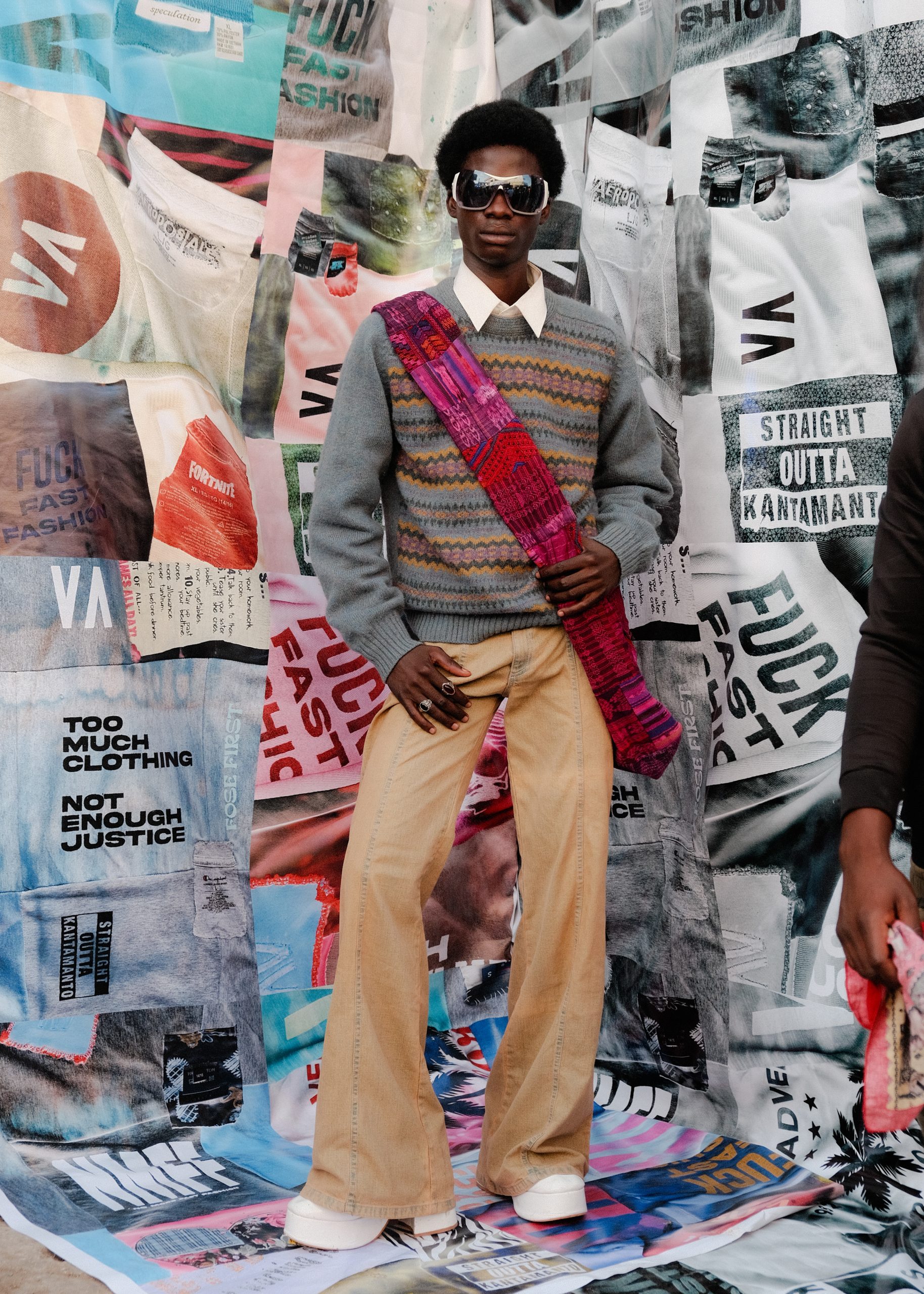 ‘Er is volgens mij geen andere retail hub die zoveel kledingstukken recycles of upcycles in de tijdspan van een dag of een week. Ongeveer 25 miljoen kledingstukken per maand worden hier gerecycled.’ Door de grote overvloed aan kleding op het moment in de wereld, barst de markt op vele plekken uit diens voegen, ongeveer 40% van de binnengekomen kleding eindigt direct als afval. Kantamanto fungeert als voorlaatste halte in de levenscyclus van een kledingstuk. De laatste halte? De goot, of het strand, of illegale dumpplekken in nabijgelegen wijken. ‘De afvalbeheerfaciliteiten kunnen niet omgaan met de capaciteiten. We doen wel clean ups, maar deze voelen performatief, symbolisch.’