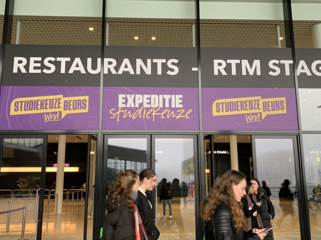 Bij aanmelding voor de opleidingenbeurs moest je een tijdslot kiezen – het gaf even 2020-corona-vibes. Volgens de organisatie was dit vanwege de drukte en de lange wachtrijen. Al om 11 uur liepen de eerste studenten weer naar buiten. Schreeuwend riepen ze naar hun naar binnen lopende vrienden: “Joh maat, het is echt saai, wij zijn maar een half uurtje gebleven. Jullie moeten ook echt niet langer blijven, man!”