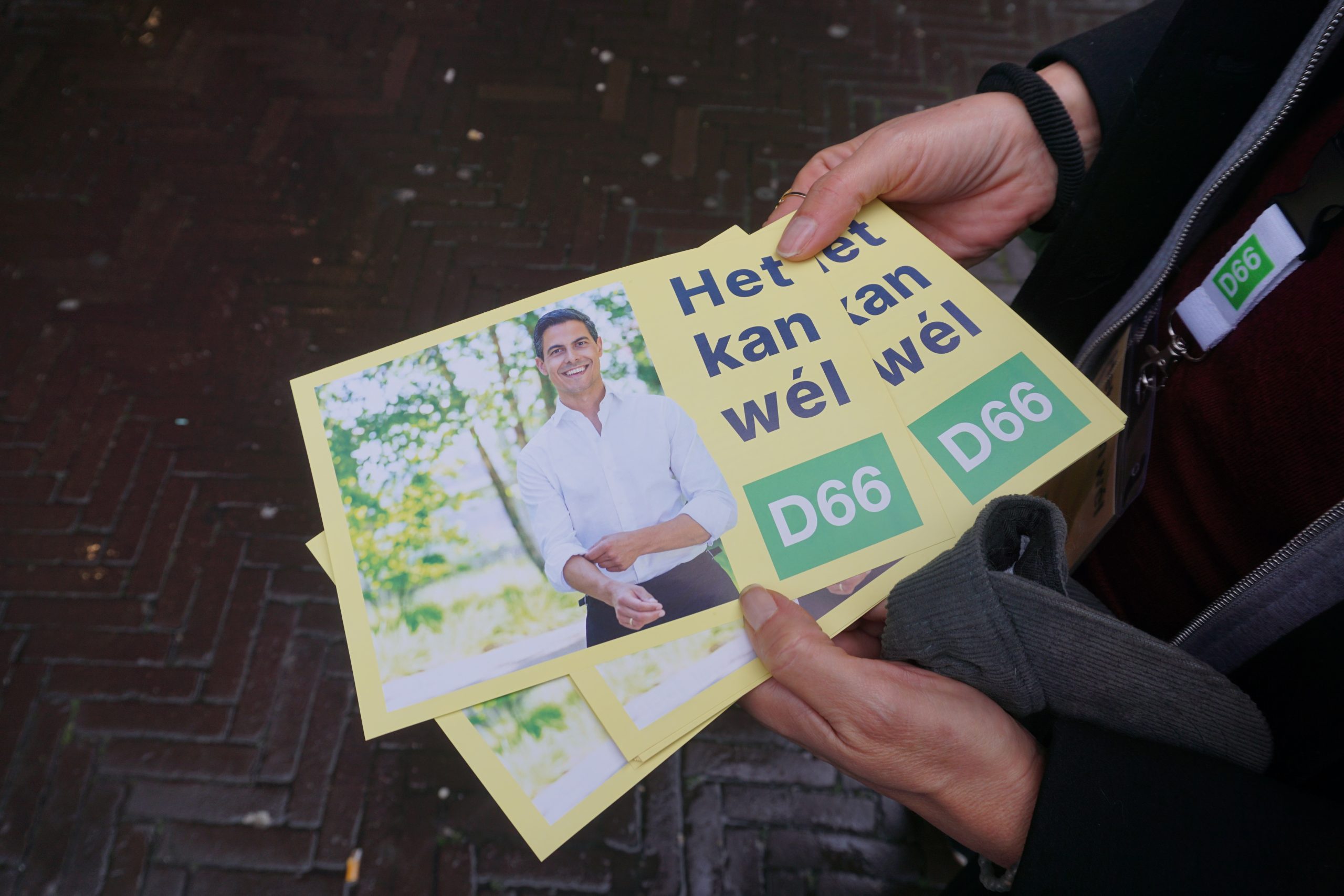 D66 flyers met de slogan die te zien is in hun campagne strategie. Lukas Kuijper
