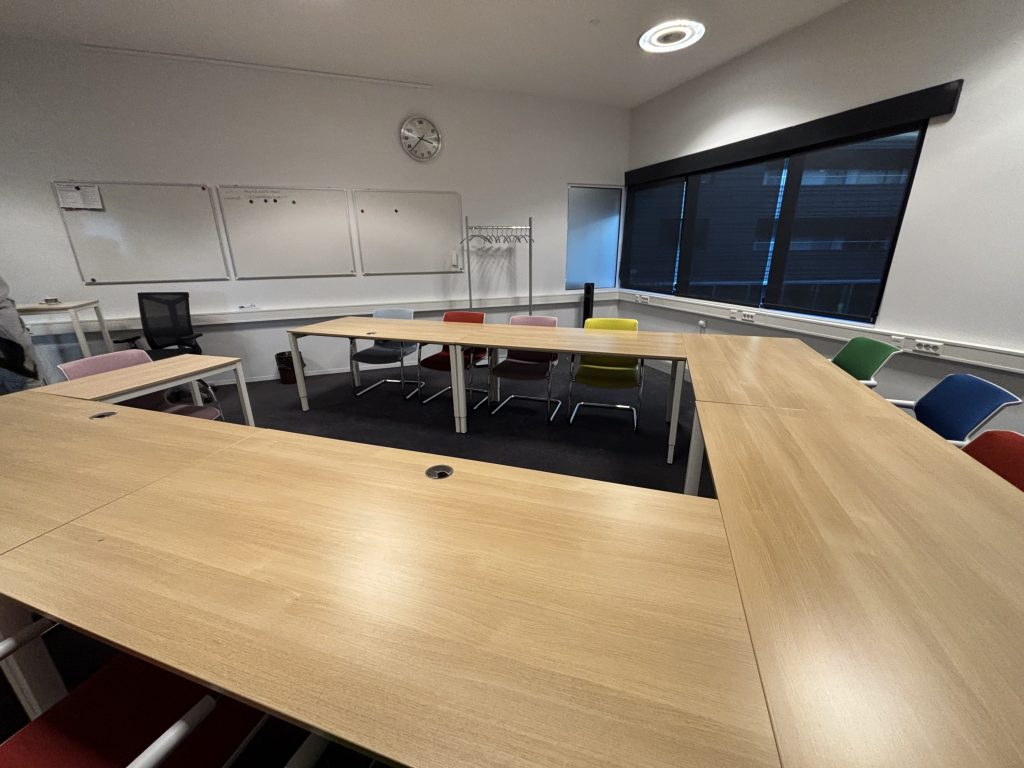 De tafels staan in een U-vorm, gericht op het digibord. Gerda kiest haar plek tegenover het scherm. Door een klein raam is buiten licht te zien, maar het geluid blijft gedempt. Zelfs het geroezemoes uit de gang klinkt nauwelijks door. Gerda legt haar tas op tafel, haalt een boekje tevoorschijn en begint aantekeningen door te nemen. Iedere week noteert ze wat er besproken is.