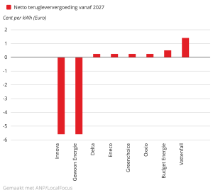 “Bij sommige energiemaatschappijen worden de kosten van teruglevering hoger dan de vergoeding voor het terugleveren.”