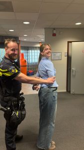 Afbeelding 1: Rosa wordt tijdens haar dag bij de politie in de boeien geslagen