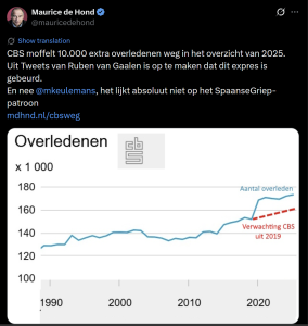 ‘CBS moffelt 10.000 extra overledenen weg in het overzicht van 2025. Uit Tweets van Ruben van Gaalen is op te maken dat dit expres is gebeurd.’