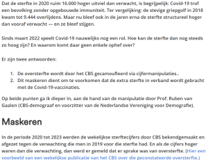 - Dit maskeren dient om te voorkomen dat de extra sterfte in verband wordt gebracht met de Covid-19-vaccinaties.’