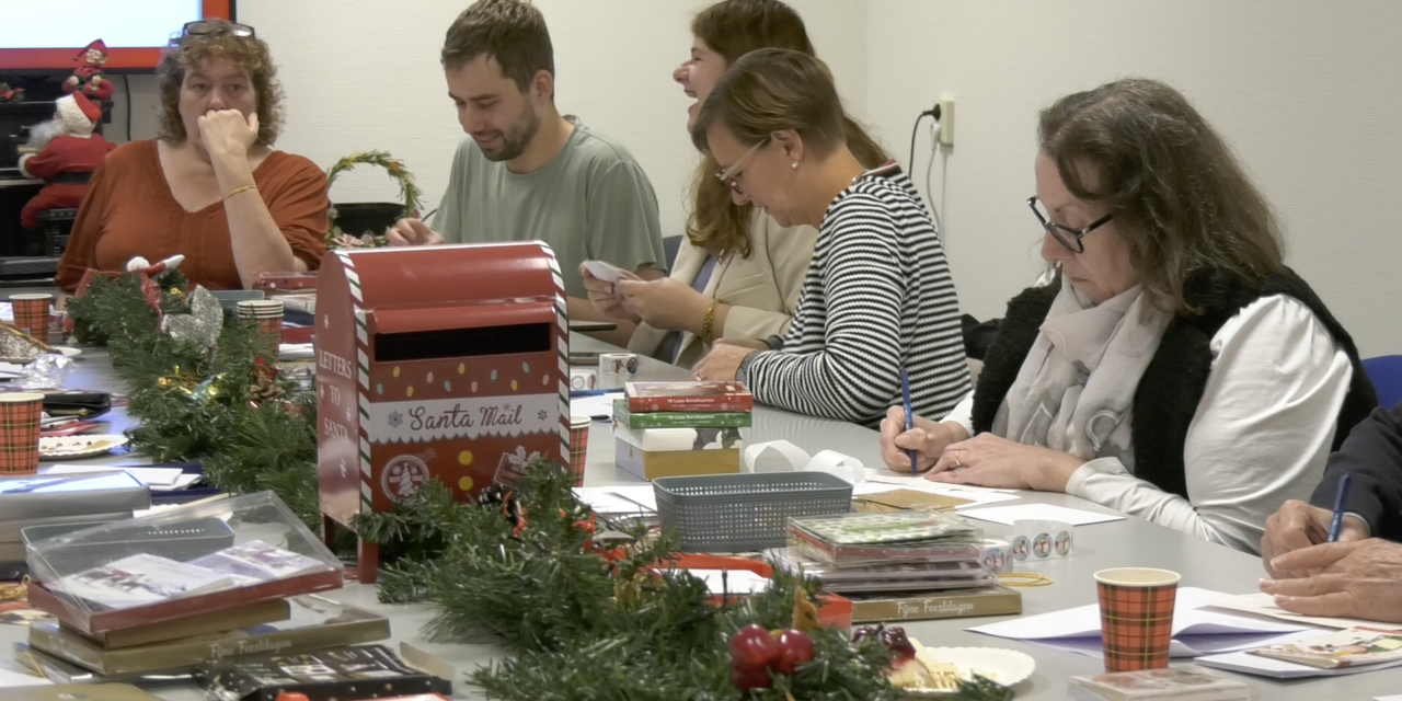 ‘Kerst voor Iedereen’ is in 2023 begonnen, en ze hebben dat jaar 10.000 kaarten geschreven. In 2024 waren dat er 22.000, en dit jaar doelen ze op de 25.000 kaarten. Daar hebben ze een hoop vrijwilligers voor nodig, en die zijn massaal op komen dagen. Iedereen met een eigen verhaal, maar allemaal met een gezamenlijk doel: een lichtpuntje creëren voor zij die het het hardst nodig hebben.