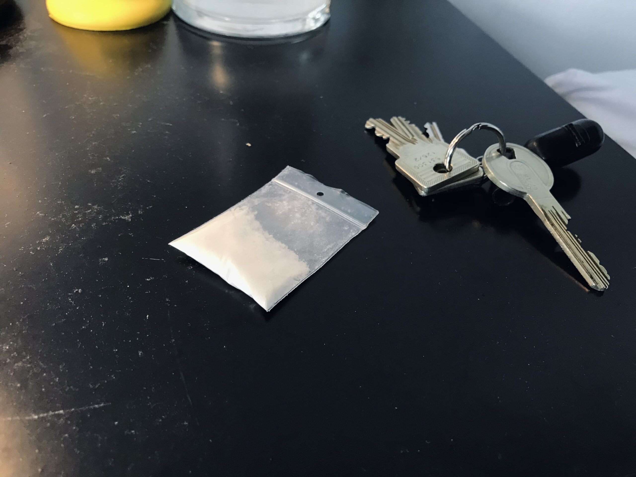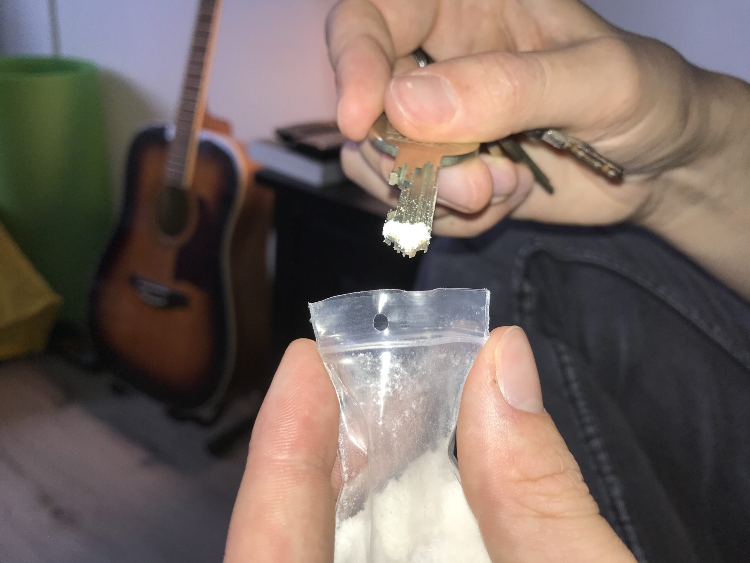- Daan doseert de 3-MMC altijd met dezelfde sleutel | Foto: Pepijn van Wezenberg