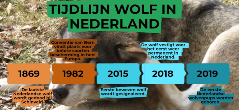 Na lang verdwenen te zijn is het nu een feit, de wolf is terug in Nederland. De verdwijning en terugkomst van de wolf in Nederland is een lang verhaal. Omdat verhaal kort te houden kun je hier de tijdlijn bekijken met de belangrijkste gebeurtenissen.