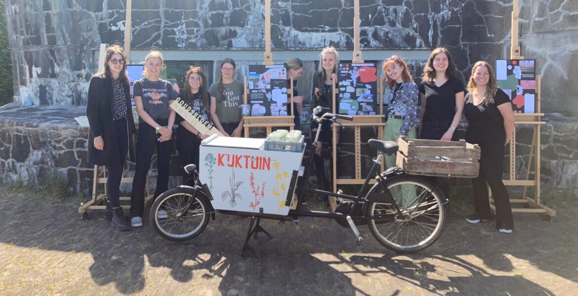‘’We hebben de borden, dus de moodboards die het verhaal vertellen. Je hebt het hoofdbord, we hebben de borden over de planten, we hebben er hier één die gaat over het thee label. Ik heb met mijn groep twee ‘borden’ het theelabel en de display in de vorm van een bakfiets. We hebben ook de uitnodigen naast ons en binnen staan de verwijzingen naar onze social media,’’ legt studente Jasmijn Pronk uit. De moodboards leggen één voor één op een rijtje uit wat de studenten in elkaar hebben gezet en hoe. Zo legt het hoofdbord uit wat de KijkTuin inhoudt en leggen de studenten uit op de moodboards hoe zij het theelabel ontworpen hebben en de bakfiets.