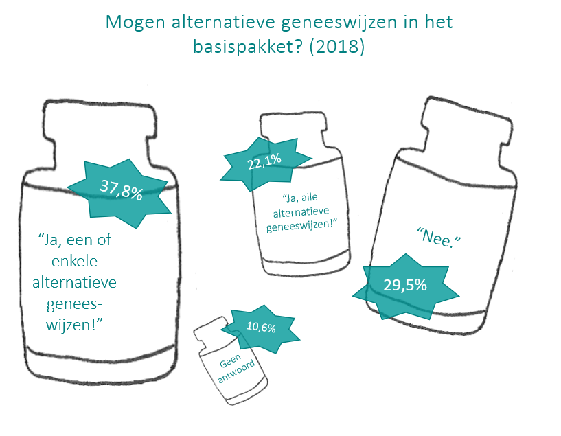 In datzelfde jaar gaf echter bijna 60% van de respondenten aan dat ze één of meerdere alternatieve geneeswijzen in de basisverzekering zouden willen zien. Alternatieve zorg wordt dus niet compleet genegeerd; er is enige animo voor.
