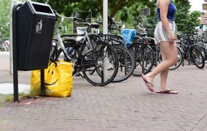 Op het pleintje voor de bibliotheek bij Rozet zijn wat daklozen te herkennen. Grote boodschappentassen, slaapspullen, alles wat ze bezitten.