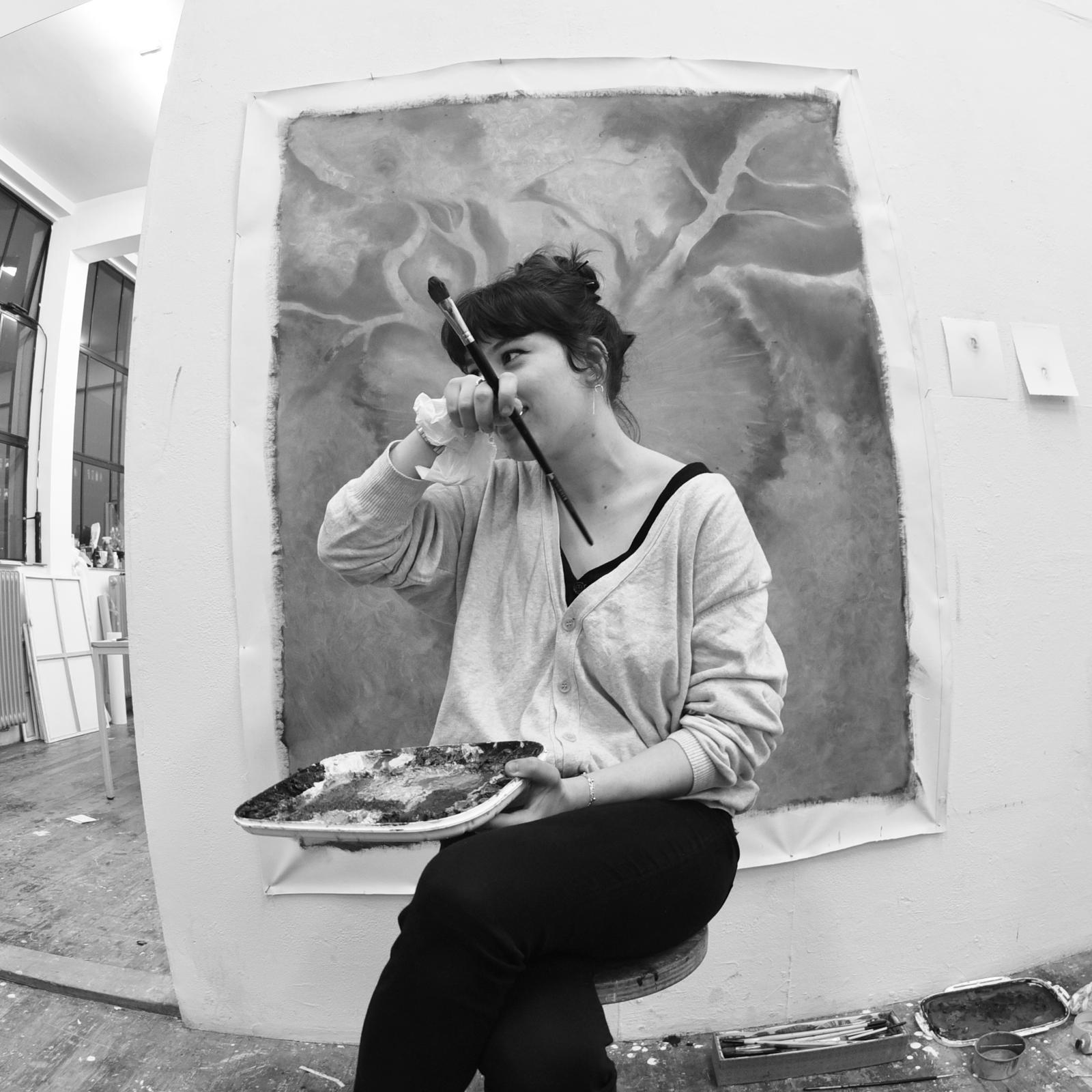 - Robin Pieterse voor een van haar schilderijen.