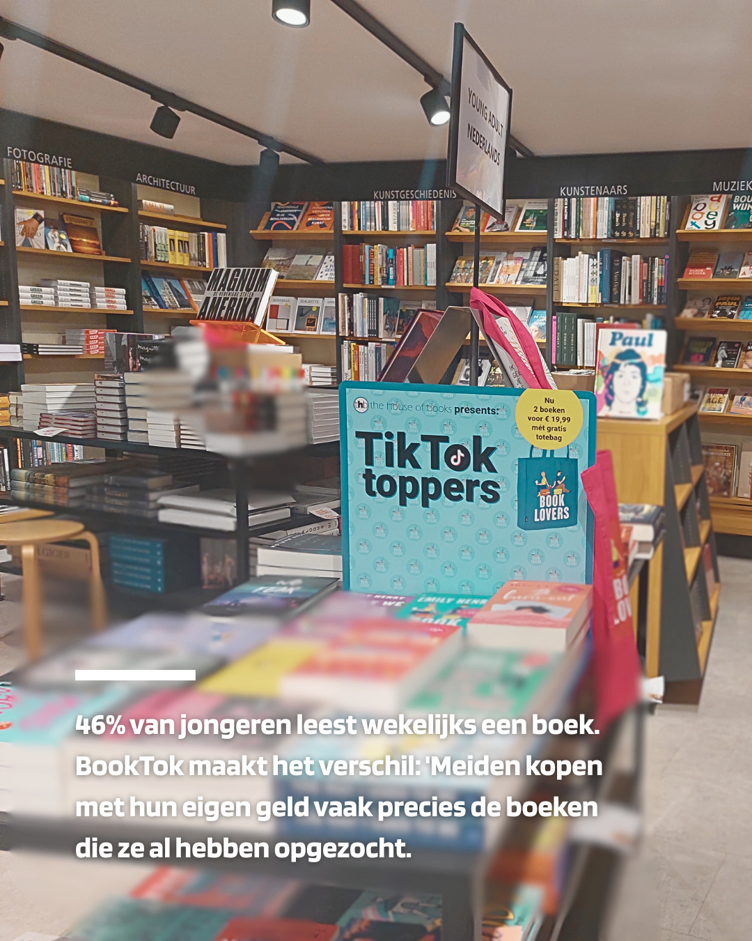 Aan de Leusderweg in Amersfoort is de Algemene Boekhandel een voorbeeld van hoe jongeren boeken selecteren. Eigenaar van de winkel Lisette Scheurwater vertelt: “Meiden kopen met hun eigen geld vaak precies de boeken die ze al hebben opgezocht. Ze vertellen ook graag waar ze de boeken hebben gevonden.”