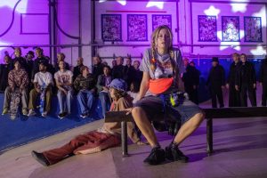 De lucht in Skatepark Utrecht trilt die avond van verwachting. Het is 1 oktober: buiten vallen er lichte druppels en mensen hebben hun herfstsjaals om. Op het terrein vormt zich een menigte van zo’n driehonderd mensen. De skatebaan is omgetoverd tot een kathedraal van licht en geluid. Uit elke hoek klinkt een stemgeluid, tot stand gekomen door een koor van honderdvijftig mensen. Op deze herfstachtige avond is de skatebaan in Utrecht geen skatebaan meer, maar een podium. Een groot koor, begeleid door een live orkest, zingt terwijl het langzaam door de hal trekt. Tussen hen in maken Emma en twee andere jonge makers op skateboards zwijgend theater. Geen woorden, geen tekst. Alleen hun lichaam spreekt.