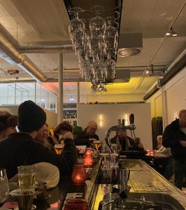 Er is veel sfeer in de al enigszins drukke foyer van Zaal 3, te zien door de grote glazen puien. Rondom het grasveldje voor de ingang staan wat overdekte picknickbanken, waar een aantal vroege bezoekers een wijntje en een sigaret genieten. Bij binnenkomst in de hoofdfoyer, en daarmee ook de enige foyer van dit kleine theater, word je ontvangen door warm sfeerlicht en een geur van lekker eten. Het is een robuuste, industriële open ruimte, met een strak gestileerd systeemplafond. Naast theater fungeert deze plek ook als ontmoetingsplek. Je kan plaatsnemen aan de gemoedelijke bar op de vintage houten barkrukken, of je reserveert twee uurtjes voorafgaand aan de voorstelling een bistrotafel. Zaal 3 heeft een eigen keuken, die het gevoel geeft alsof je in een uitvergrote, gezellige woonkamer zit te tafelen. Een warme soep, een maaltijdsalade, en na afloop gebak met koffie. Het is de opmaak richting de show, die in alle gezelligheid bijna een kers op de taart lijkt, terwijl de foyer langzaam voller raakt.