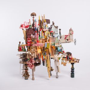Die houding is Amerentske altijd bijgebleven. In haar werk zie je dat onder andere terug in hoe ze met materiaal omgaat. Ze werkt veel met dingen die al een leven achter zich hebben. “Afval bestaat eigenlijk niet voor Amerentske. Ze ziet overal mogelijkheden in,” vertelt Marijke. Wat andere misschien zouden weggooien, wordt bij Amerentske onderdeel van een nieuw project en kunstwerk. Dat zie je niet alleen terug in haar werk, maar ook in hoe ze leeft. Ze is weinig bezig met bezit of status en besteedt haar tijd liever aan maken en bezig zijn. Volgens Marijke heeft ze dat ook doorgegeven aan haar kinderen: “Haar kinderen zijn ook helemaal niet materialistisch. Ze kunnen zich met weinig al vermaken.” Het kunstenaarschap van Amerentske is sterk verbonden met hoe ze is opgegroeid. Wat ze als kind thuis meekreeg, is langzaam onderdeel geworden van haar leven.