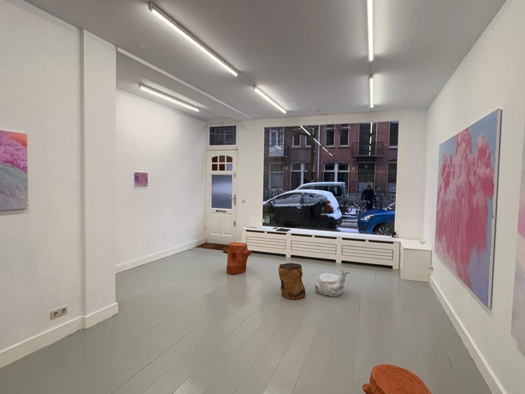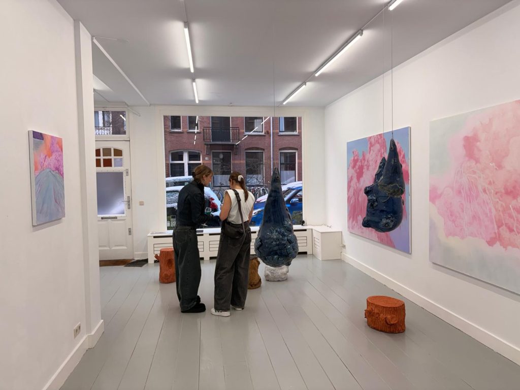 In de expositie What Floats Between Us staan schilderijen van bloemen en planten uit Zuid-Amerika en Afrika, vervoerd in jute zakken. Deze planten hebben meerdere betekenissen: medicinale toepassingen, consumptie en spirituele rituelen. Naast de schilderijen staan keramische sculpturen verspreid door de ruimte, soms klein en subtiel, soms groot en opvallend. Op de vloer liggen beschilderde boomstammen met patronen die verwijzen naar rituelen en landschappen.