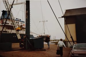 Begin maart 1987 stond hij in Stavoren voor het eerst oog in oog met het schip. Het was groter dan hij zich had voorgesteld, massief en indrukwekkend. Met zijn plunjezak over zijn schouder liep hij de loopplank op. Dit was het begin van een nieuw avontuur, dacht hij. En een avontuur zal het worden. Aan boord werd hij snel opgenomen als één van de in totaal zeven bemanningsleden. Er was weinig tijd voor uitleg. Hij kreeg een hut toegewezen, deelde die met collega Rik de Rooij en werd vrijwel meteen aan het werk gezet. Het leven aan boord bleek minder spectaculair dan hij had verwacht. Dagen bestonden uit onderhoud: roest bikken, verven, schoonmaken en het vastzetten van de lading hout met kettingen en spanbanden. Het uitzicht veranderde nauwelijks alleen water, dagenlang.