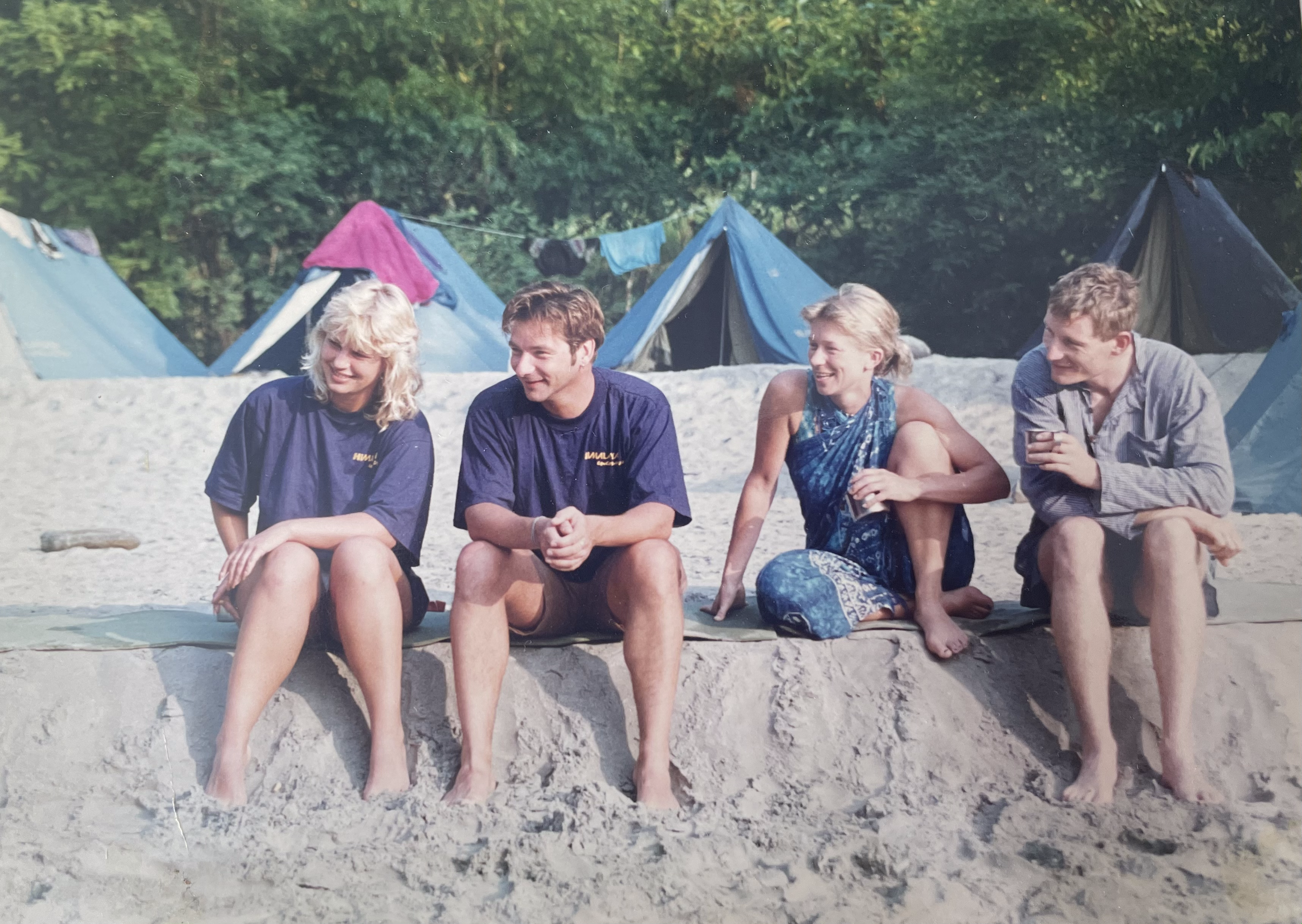 De volgende ochtend lopen ze met dezelfde groep door de bergen met al hun spullen. Het is een zware tocht. Eenmaal op de plek van bestemming aangekomen, maken ze samen met de gids het kamp klaar. De volgende ochtend, om half zeven, wordt Diana wakker door een vreemde geur. Ze tikt Hans aan en gebroken dat hij is, door weinig slaap, vraagt ze aan hem: ‘Ruik je dat ook?’ Hans doet de tent open en steekt zijn hoofd door een kier, ‘moet je kijken! Ze verbranden iets in het water.’ Aan de kant zitten de toeristen met een kopje koffie naar de locals te kijken. Ze verbranden een dode op de rivier. Wanneer iemand overlijdt in Nepal wordt het lichaam bij/op het water verbrand. Vooraf is er nog een uitgebreid ritueel. Het lichaam wordt gewassen en in een doek gewikkeld. Volgens het hindoeïsme komt de eindeloze cyclus van geboorte, dood en wedergeboorte zo tot een eind. De geur van as verspreid zich over de rivier, het is afschuwelijk. Een luguber iets om te zien op de vroege ochtend. En niet zo’n frisse gedachte dat ze zich in diezelfde rivier moeten wassen. Ze pakken hun spullen in en gaan voor het eerst het water op. De eerste drie dagen zijn niet al te wild, gelukkig maar.