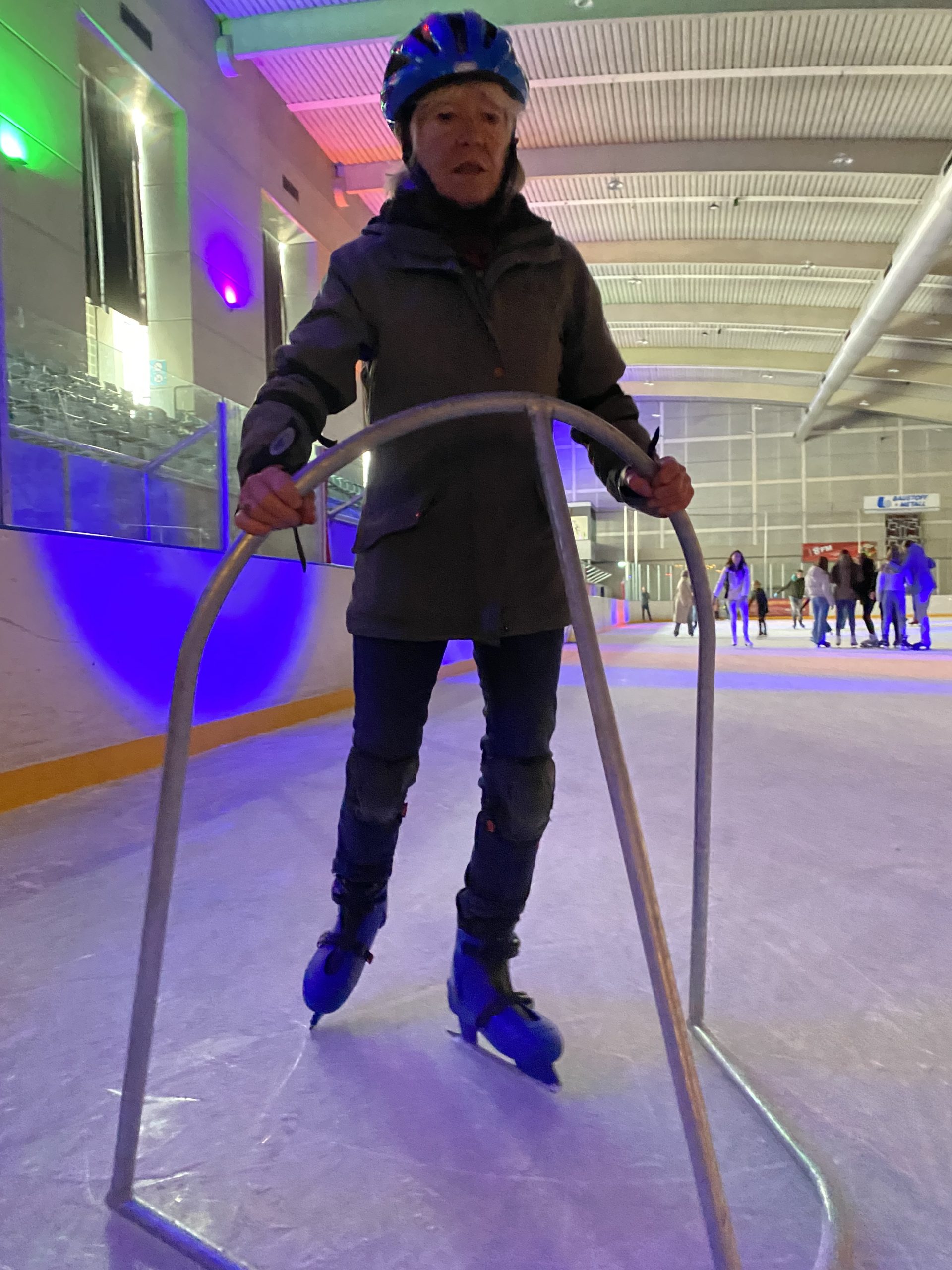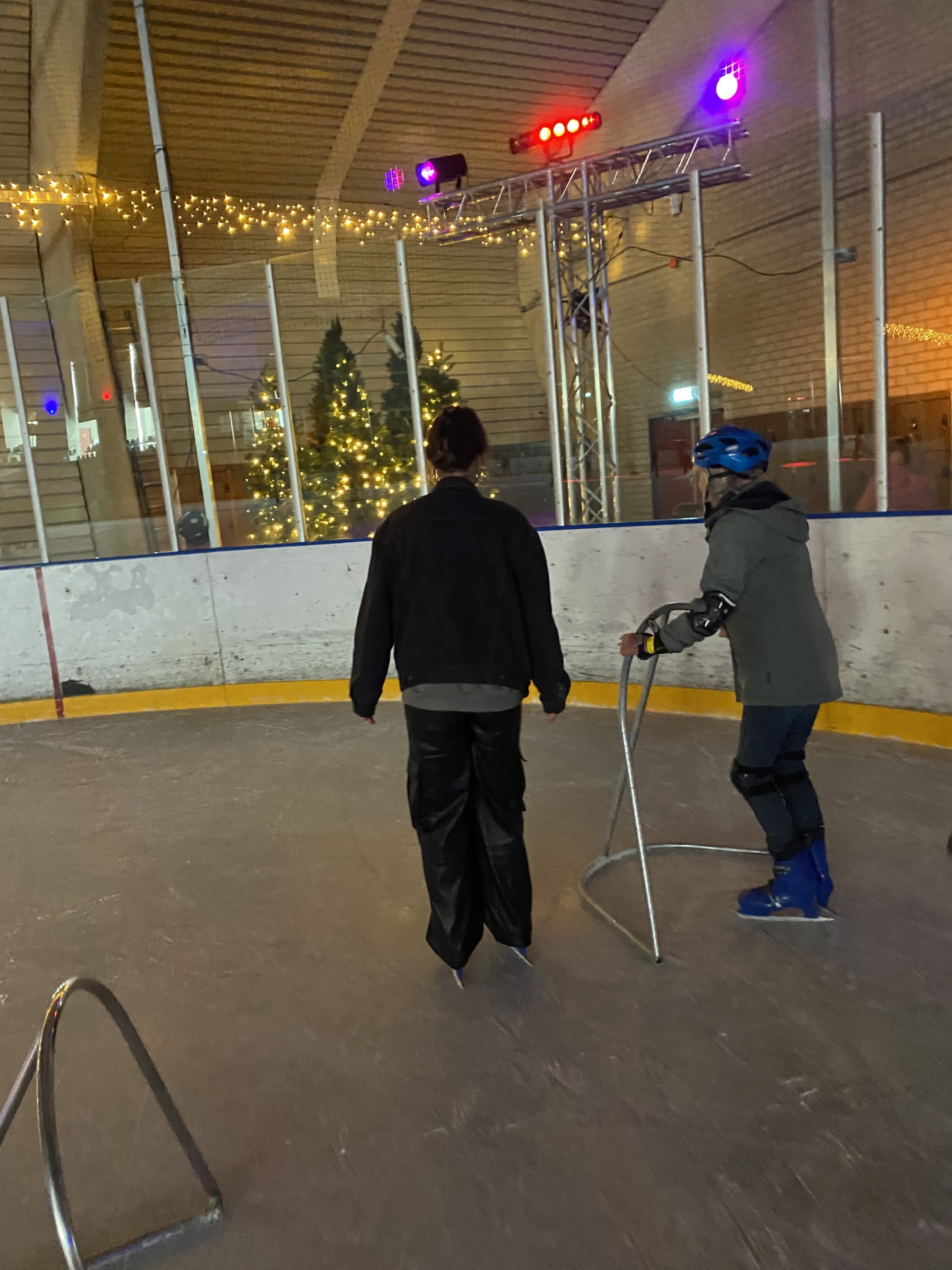 Na rondje nummer zes word ik vriendelijk verzocht zelf ook écht even te gaan schaatsen, ‘ik red het wel even alleen’, hoor ik haar zelfverzekerd zeggen. Niks ten nadele van mijn oma, maar door haar tempo heb ik het stiekem best koud gekregen. Ik voel de wind in mijn haren en merk dat mijn lichaam weer warmer wordt. Toch lukt het me niet om haar ook maar een seconde uit het oog te verliezen en na mijn derde rondje sluit ik me weer vertrouwd bij haar aan. Na tien rondjes vindt ze het mooi geweest, ‘Ik ben bang dat ik anders fouten ga maken’. We maken samen nog een foto en stappen over de drempel van de ijsbaan op de rubberen anti-slip vloer. Haar schaatsrek laat ze los en het gladde ijs verruild ze voor de stevige ondergrond. Ze is weer stabiel en kijkt me stralend aan; ‘Morgen heb ik spierpijn, maar dit was onvergetelijk. Bedankt!’