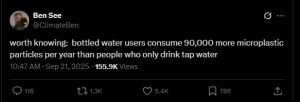 Claim: Mensen die vooral water uit plastic flesjes drinken krijgen 90.000 meer deeltjes microplastic binnen dan mensen die uitsluitend kraanwater drinken.