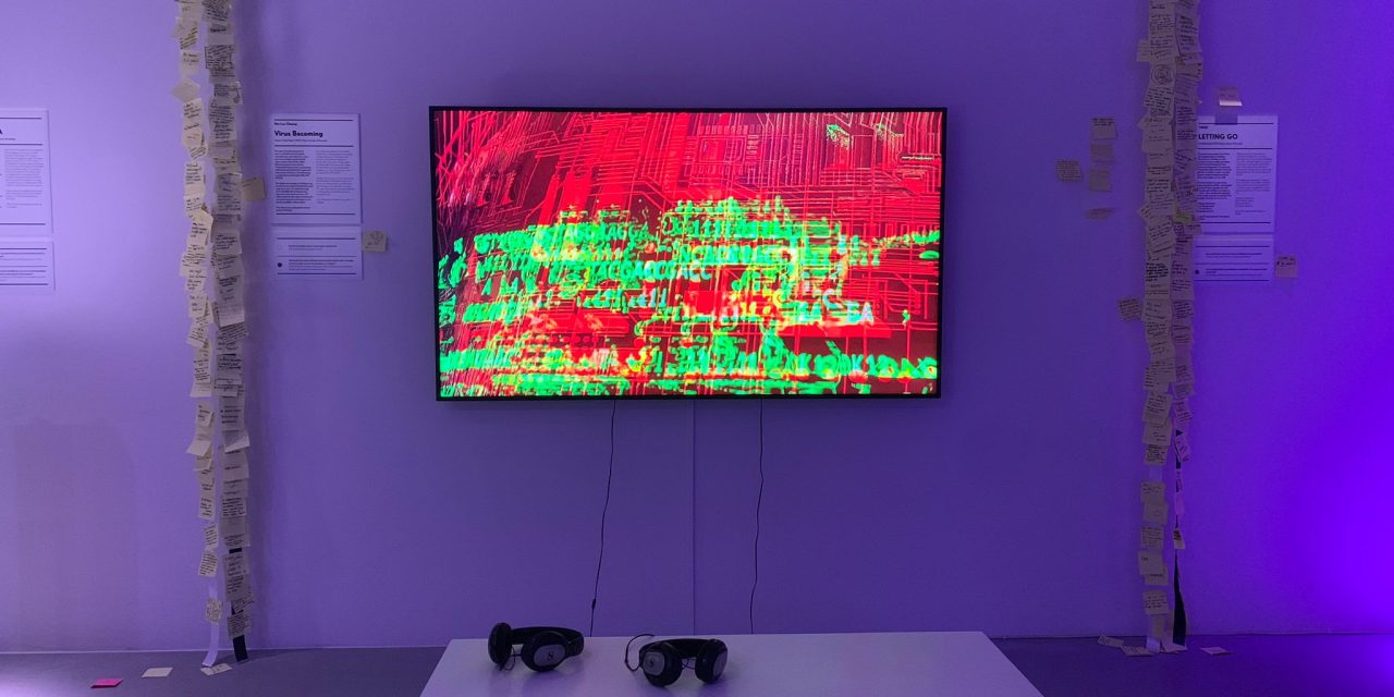 De expositie is tot 1 februari in het centrum van Utrecht te bezoeken. De curator Ine Gevers, heeft de tentoonstelling samengesteld met kunstwerken van verschillende kunstenaars, waarbij veel gebruik wordt gemaakt van media en techniek. De kunstwerken staan bij elkaar in één ruimte, het is samen een geheel waarbij het geluid en licht bijdragen aan de ervaring. Leonie: ‘Het idee is eigenlijk dat de tentoonstelling impact heeft op jezelf en je er als een ander persoon uit komt. Allerlei systemen die onze wereld filteren worden bevraagd, als je dat op je laat inwerken, kom je er anders uit dan dat je erin ging’.
