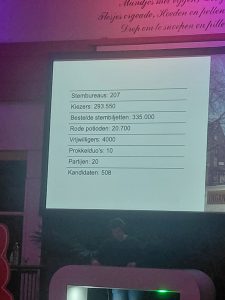 Het mooie van deze avond is dat iedereen het gezellig heeft. Zo reageert Fred van der Star, commissielid van de PVV: “Het was leuk om bekenden weer te spreken en te zien, wat ons betreft een leuke avond.” Bij de ChristenUnie klinkt hetzelfde geluid: “Het is goed om elkaar weer te zien en te bespreken wat er is gebeurd.” Dat geeft wel aan hoe gemoedelijk de avond is. Waar partijen de afgelopen weken alle moeite hebben gedaan om zoveel mogelijk stemmen te halen, drinken ze nu samen een biertje en praten ze na over de campagne.