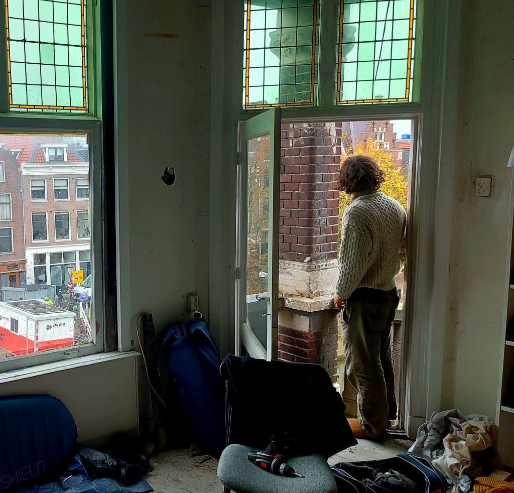 “We hebben het best bureaucratisch aangepakt. Op maandag om 16:50 precies brachten we onze brief naar de rechtbank. We wisten dat de brief om die tijd niet meer zou worden opengemaakt, hierdoor kwam deze op de stapel brieven te liggen voor de volgende dag die dan om 9:00 pas aan bod komt. Dit is onderdeel van het route die we moeten nemen door de nieuwe wetgeving. In de brief, die geadresseerd was aan de rechtbank, de gemeente en de eigenaar van het pand, lazen ze de volgende ochtend dat wij het pand aan de Oudegracht in herbezit hadden genomen. Zelf belden we ook de politie om 9 uur precies. Zij kwamen eerst met een auto waarna al snel een tweede, derde en zelfs een vierde politiewagen volgde. De politie was redelijk open naar ons toe, toen we eenmaal aantoonden dat we hier al 72 uur zaten, gingen ze weer weg. Sindsdien zitten we hier met huisvrede, dit betekent dat de politie en de eigenaar niet zomaar naar binnen mogen. Als ze dit wel zouden doen, dan zijn ze in strijd met de wet,” vertelt Draak, kraker van het pand aan de Oudegracht.