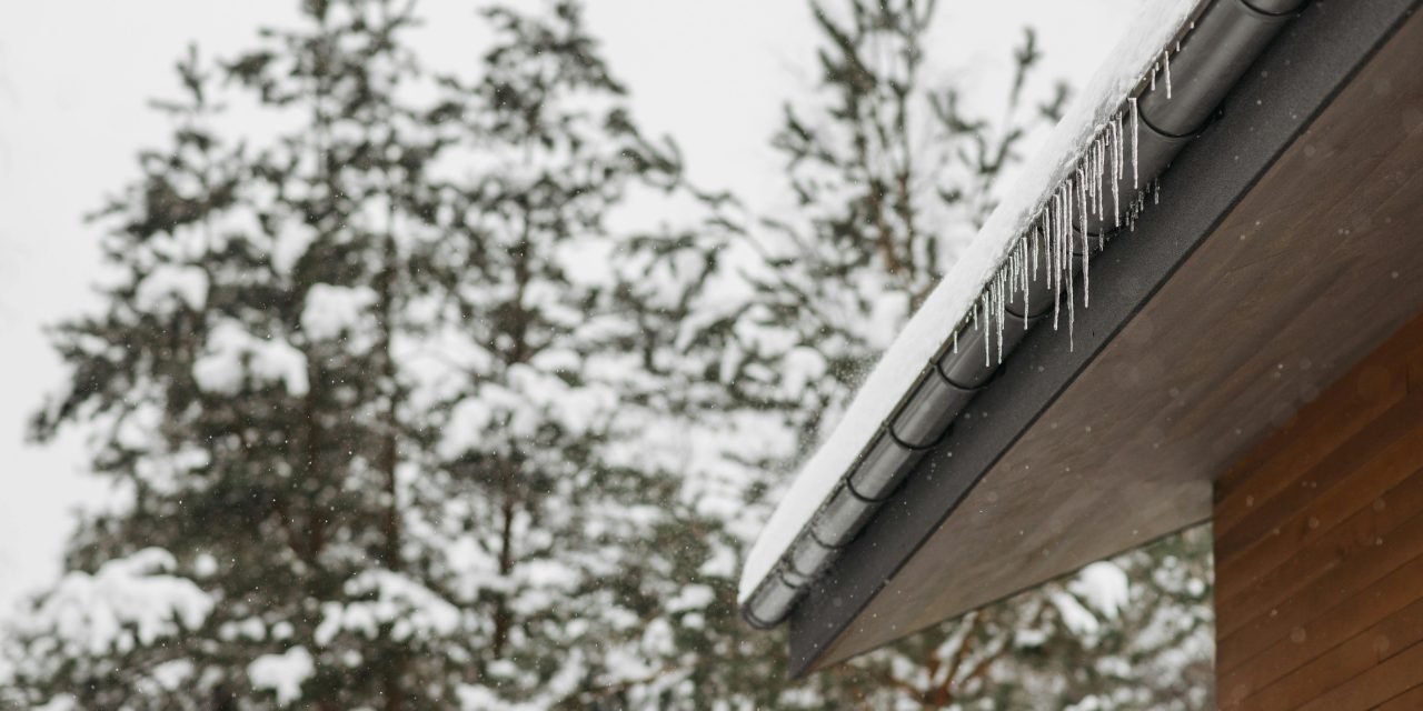 Beschadigde dakgoten door hevige sneeuwval in Woerden