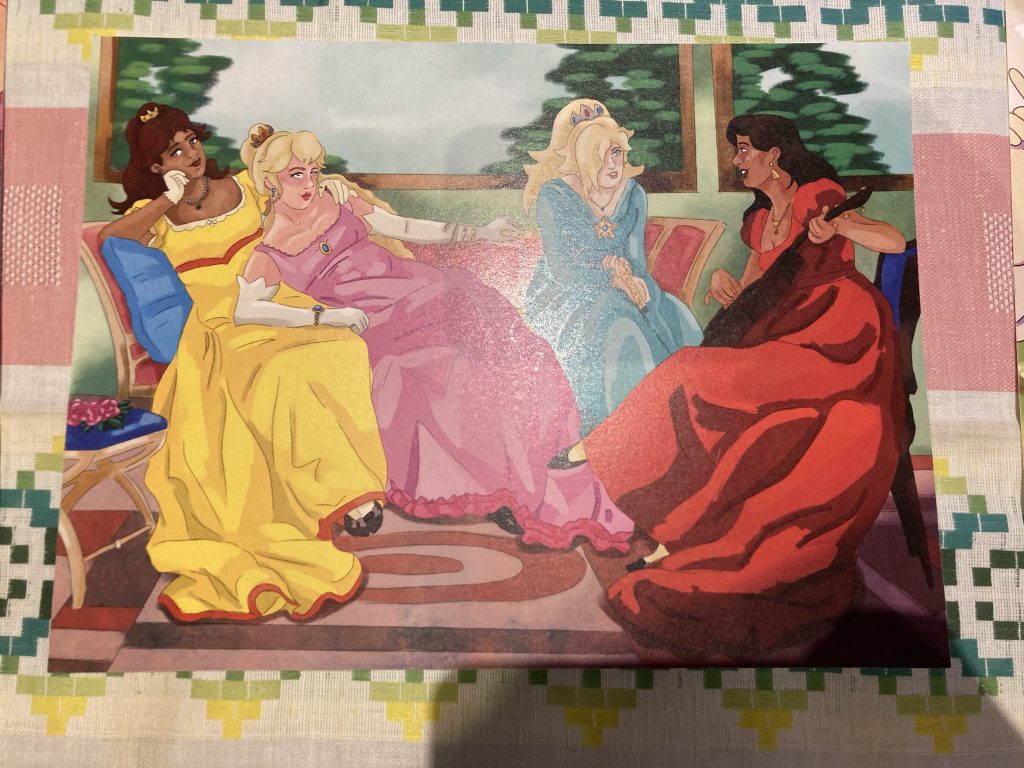 Van links naar rechts: tekening van Daisy, Peach, Rosalina en Pauline gemaakt door Merel Does. – Foto: Yim Goemans